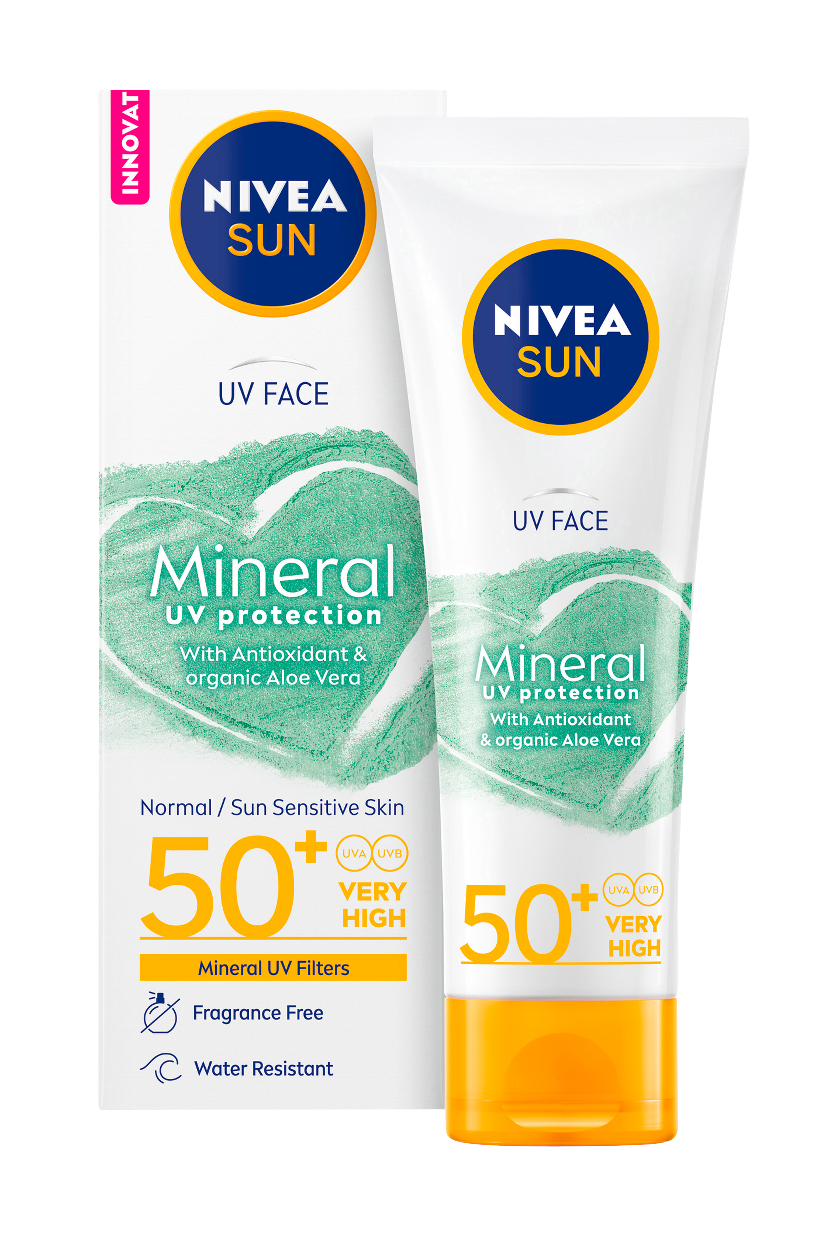 UV Face Mineral Cream SPF 50+ er en solkrem for ansiktet med svært høy solfaktor samt med 100% mineral-UV-filter. Formelen gir umiddelbar beskyttelse mot solbrenthet, langsiktig hudskade og for tidlig hudaldring. Inneholder økologisk aloe vera og antioksidanter. Spesielt utformet for normal, samt solsensitiv hud. Mineralsk UV-filter (fysikalsk UV-filter) fungerer som små speil som reflekterer bort UV-strålene fra huden. Kremen er derfor noe annerledes i konsistensen og kan oppleves fyldigere og hvitere på huden sammenlignet med solkremprodukter med kjemisk UV-filter.
