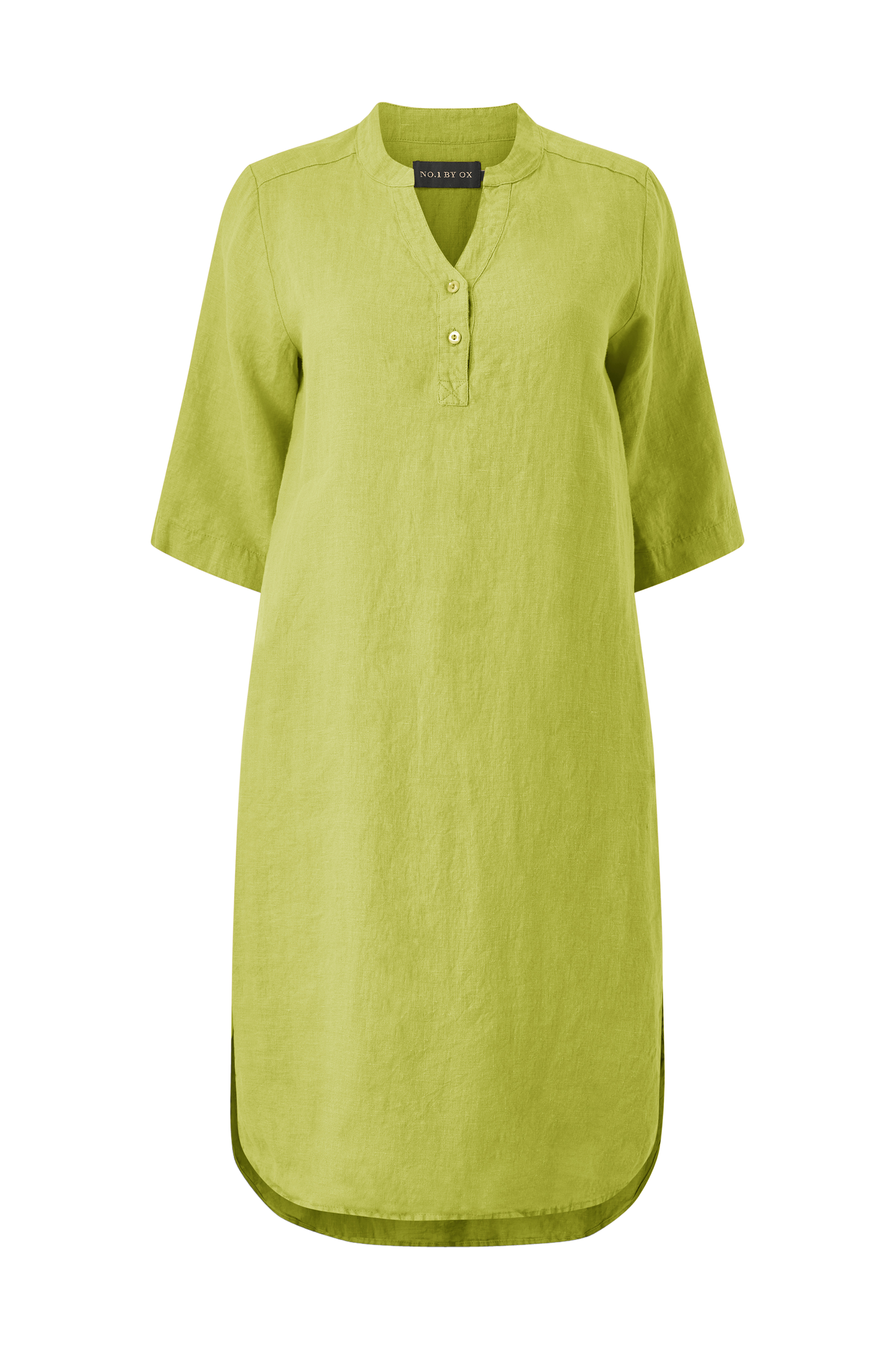 • Kjole i lin• V-hals snitt med knapper• Ermer 3/4 lang• Splitt nede i sidene• Pluss-størrelser• Lengde: 125 cm i størrelse S