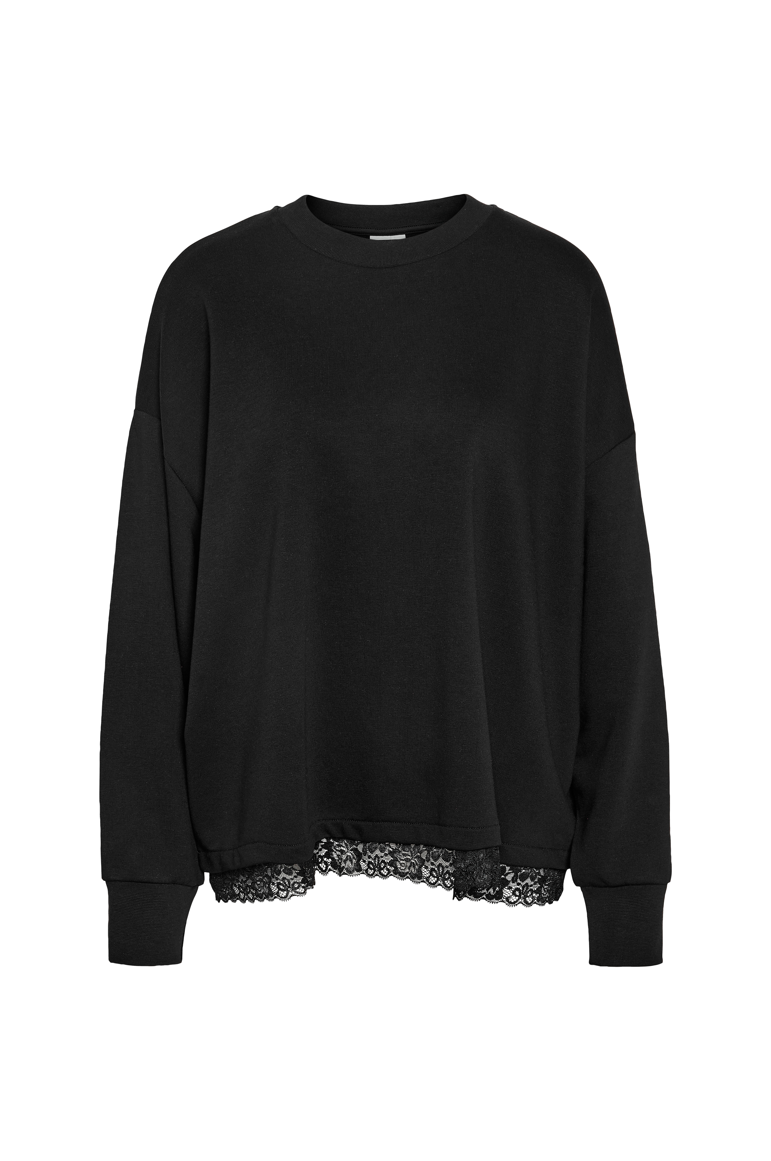 • Myk collegegenser• Rund hals• Lange ermer• Dekorative blonder på bunnen• Pluss-størrelser