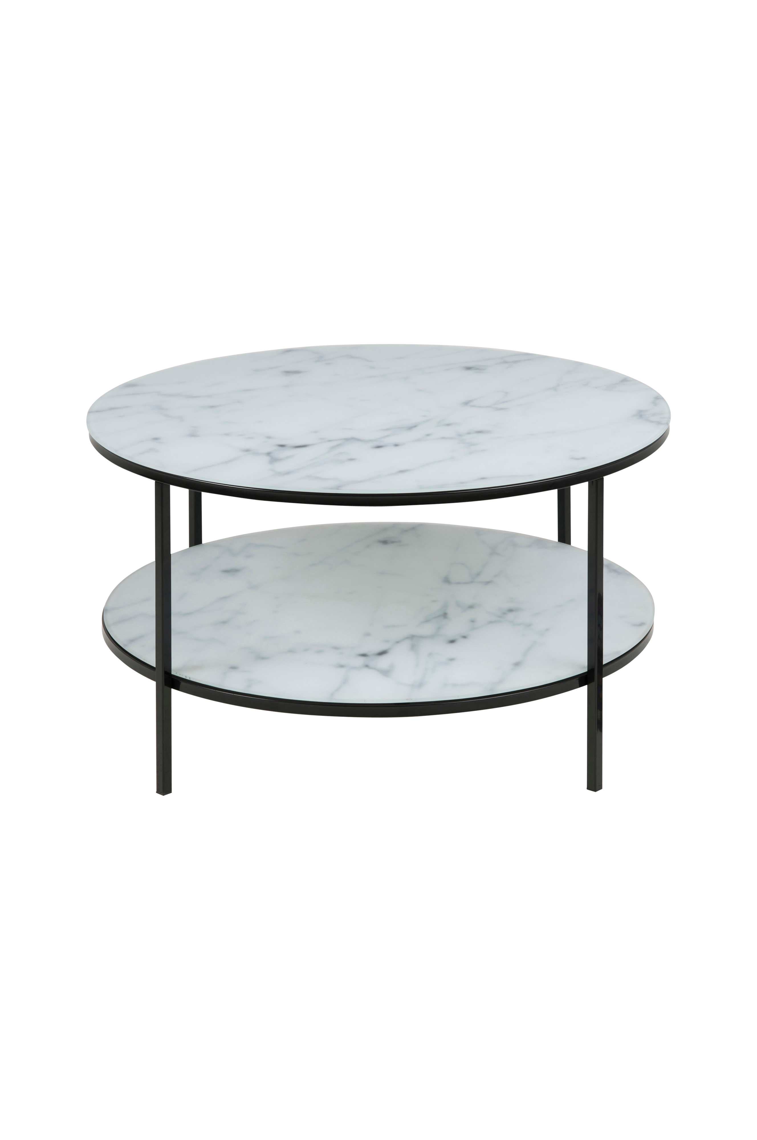 Rundt sofabord med pulverlakkert metallstativ. Printet glassplate med marmorlook. Ø 80, høyde 45 cm. Monter selv.
