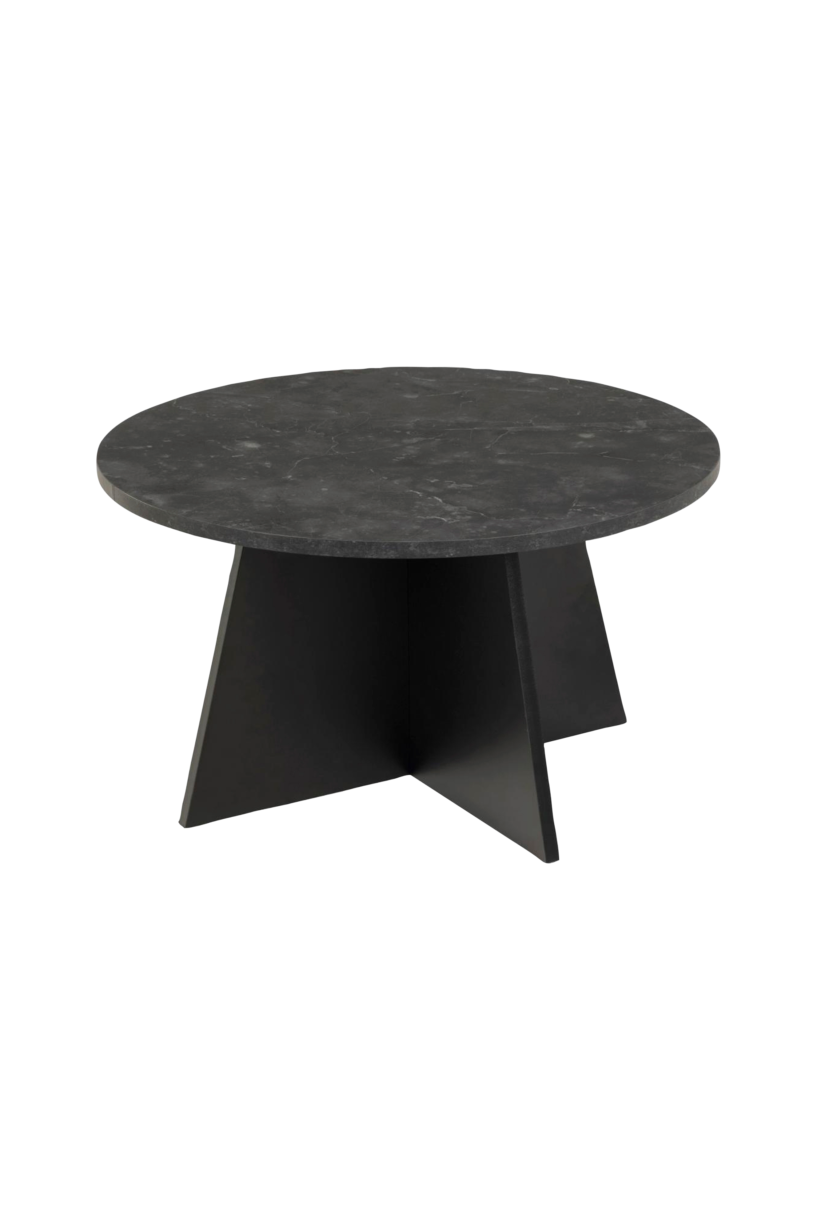Sofabord med firkantet, vinklet stamme og rund bordplate, som kombinerer form og silhuett for å skape et moderne, estetisk møbel som imponerer i hjemmet. Bordplaten ligner marmor og er produsert av melamin, noe som gir bordet en imponerende stil. Sofabord med eksklusive designrettigheter, designet av vår egen designer Lasse Cha Pedersen.