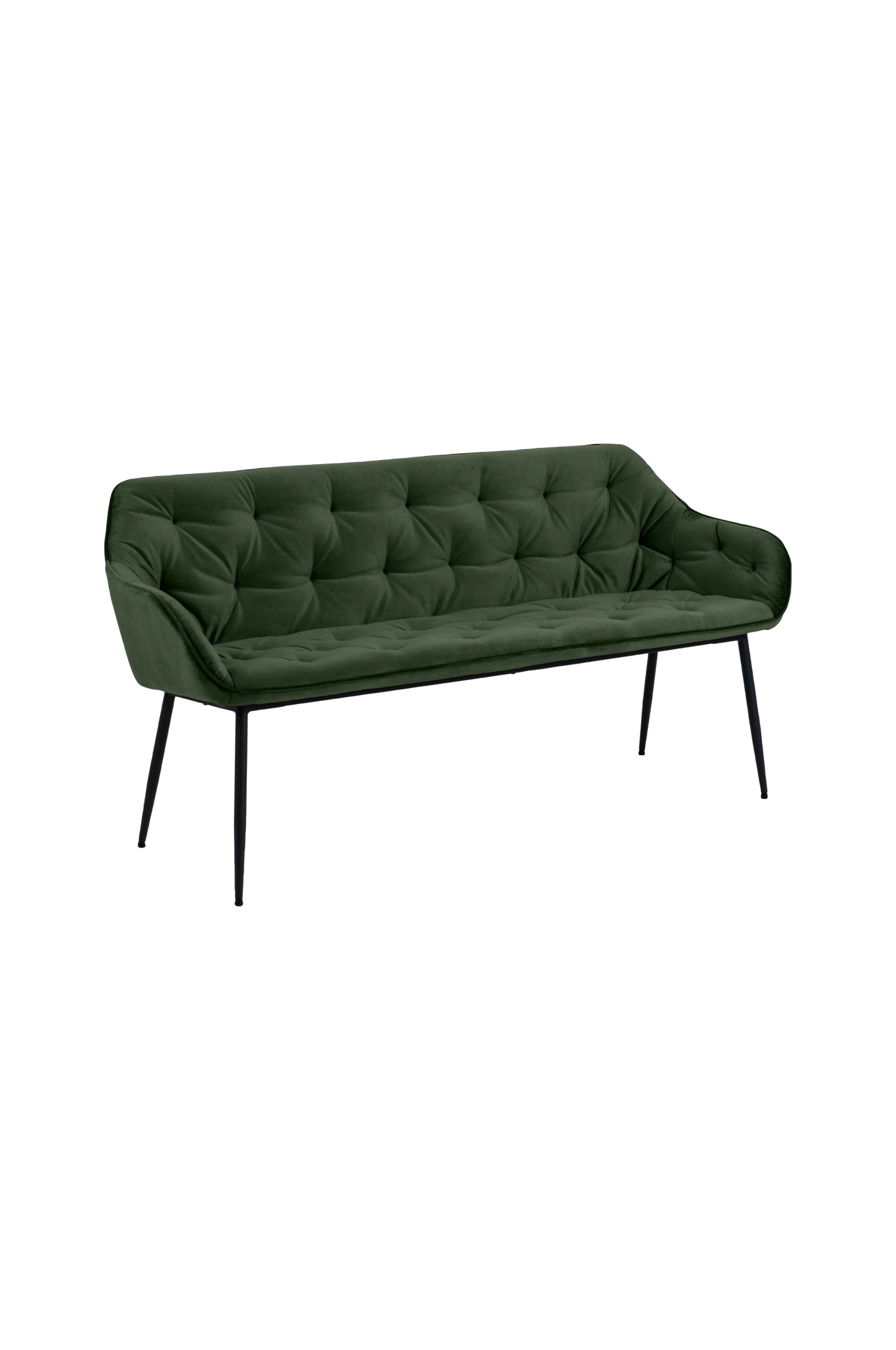 Med en romantisk stil er den skogsgrønne sofaen perfekt for alle sofistikerte rom - uansett om det er i gangen, spisestua eller soverommet. Det myke fløyelsstoffet og de tuftede detaljene gjør at sofaen skiller seg ut og får en luksuriøs følelse. Fløyelsstoffets farge skifter avhengig av lyset og retningen på luggen, noe som gir en levende, luksuriøs følelse. Leveres montert.