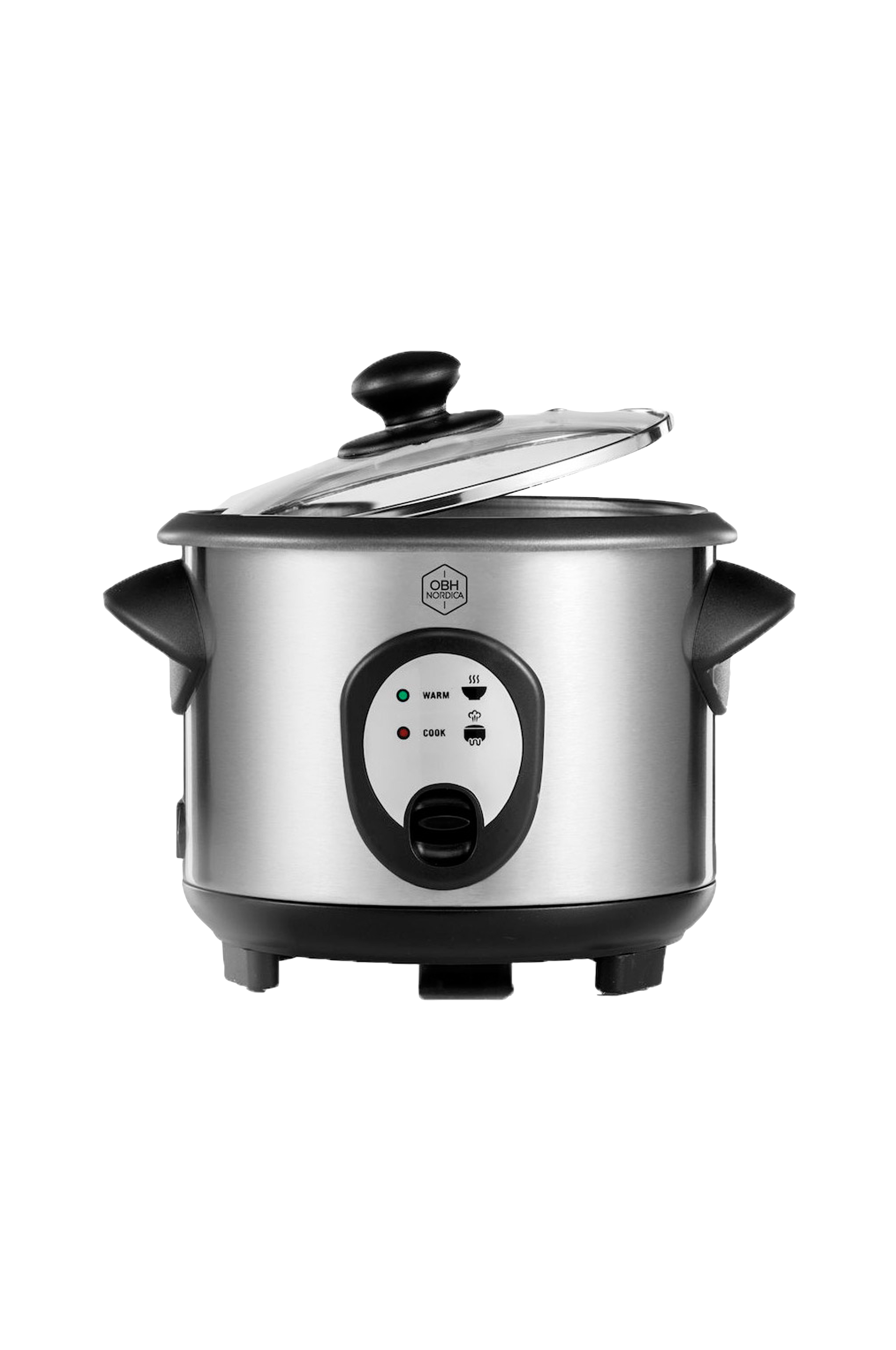 Riskoker Inox i rustfritt børstet stål med kapasitet for 1,8 liter ferdig ris.