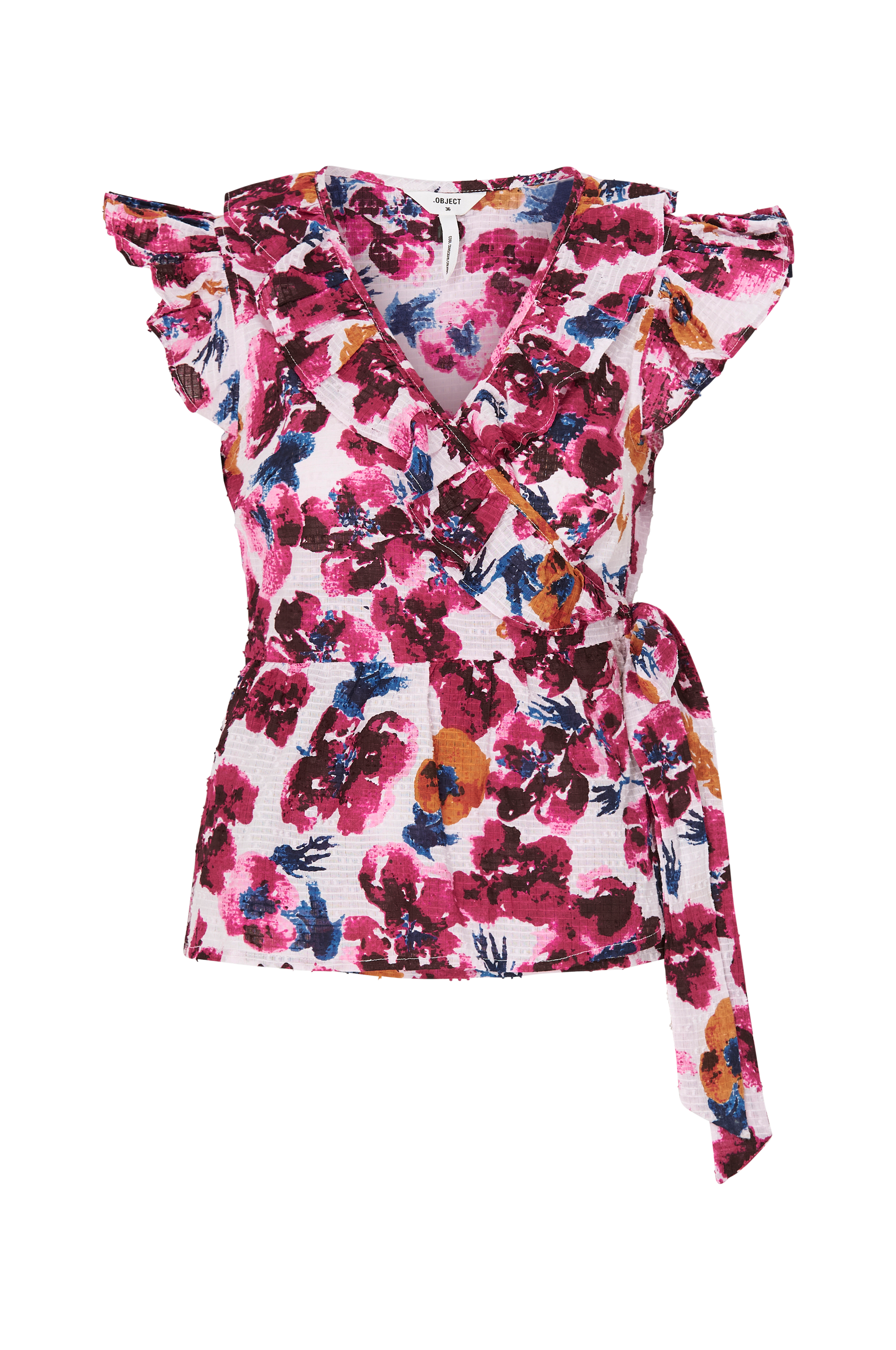 • Omslagsbluse med knytbar stropp i siden• Peplum-design• Volanger på skuldrene• Kvalitet med strukturmønster