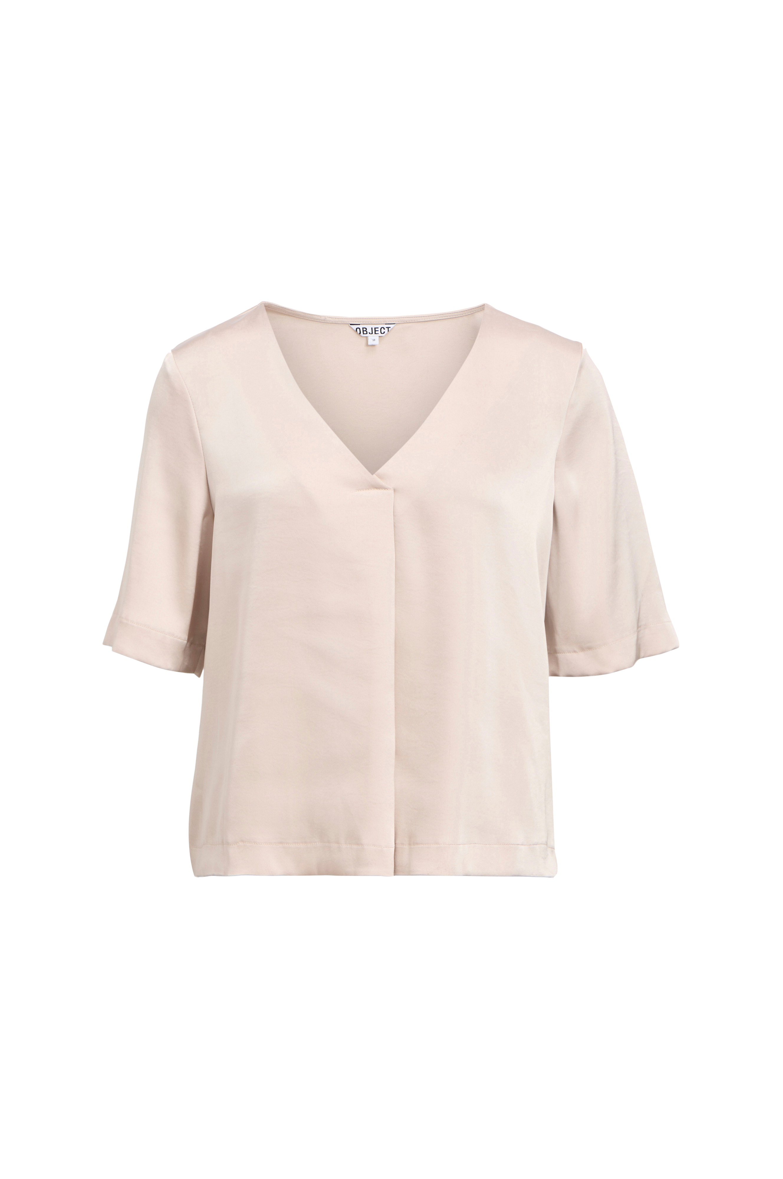• Kortermet satengbluse• V-formet hals• Krympet detalj foran