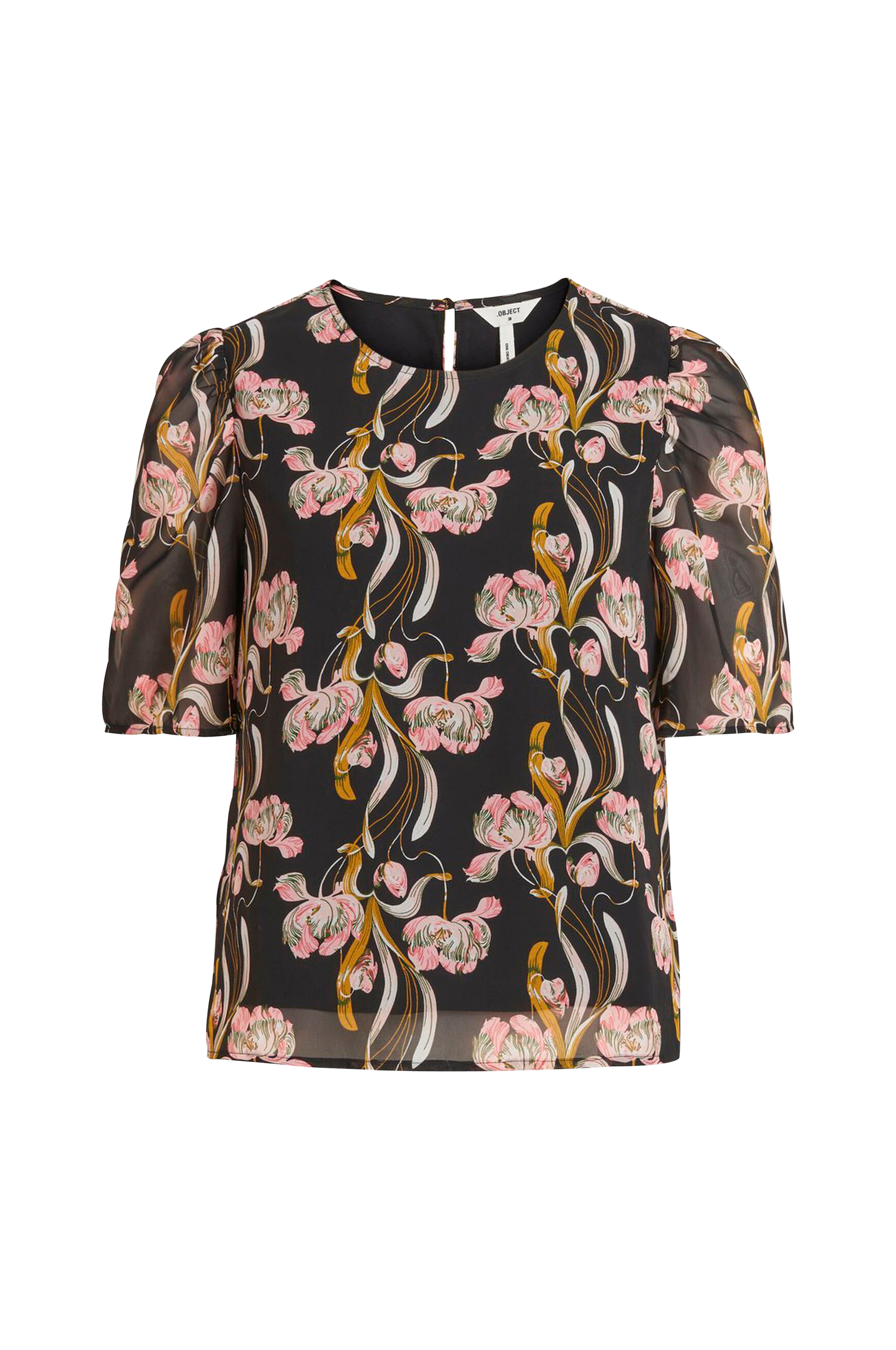 Bluse objCinna 2/4 Top fra Object i tynn, mønstret chiffon av gjenvunnet polyester. Korte ermer med lett puffeffekt. Splitt og knapp i nakken. Fôret.
