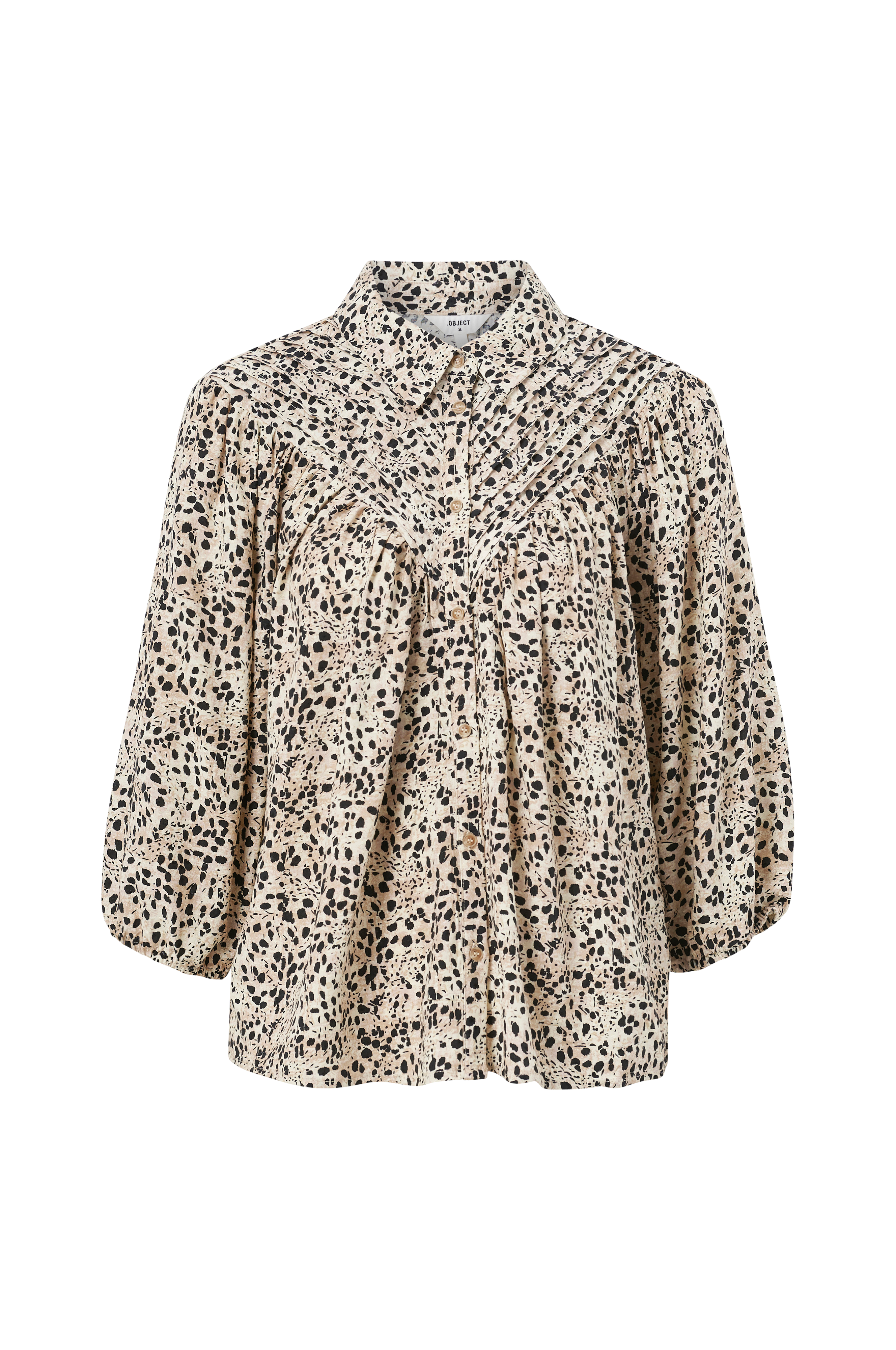 Bluse i vevd, mønstrete viskose med tekstur. Diagonale strålegg og rynket søm øverst foran. 3/4-lange ballongermer med elastiske ermekanter. Rynket bærestykkesøm bak.