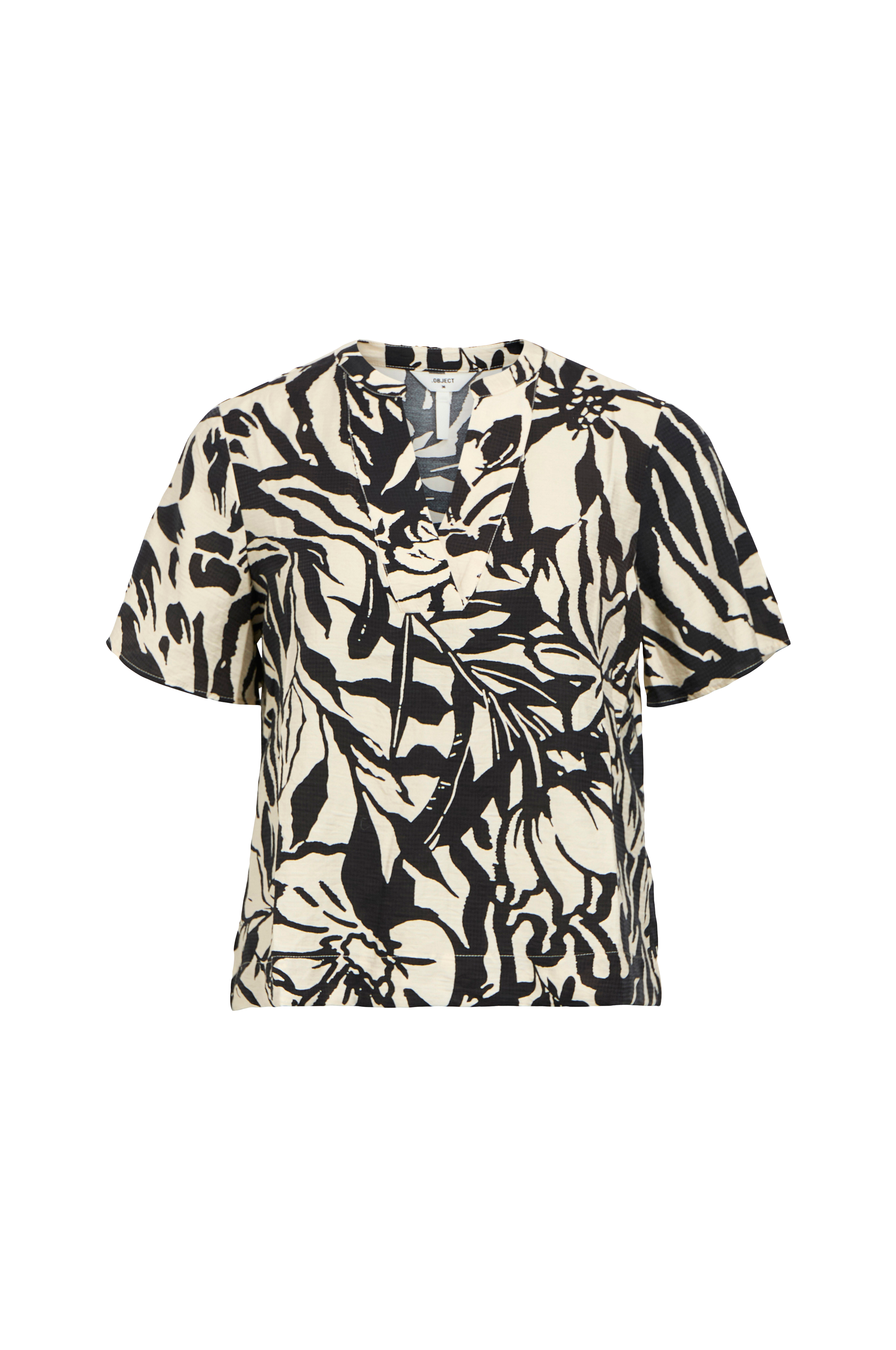 En fin bluse som passer til jeans, skjørt eller svarte bukser. Behagelig materiale.