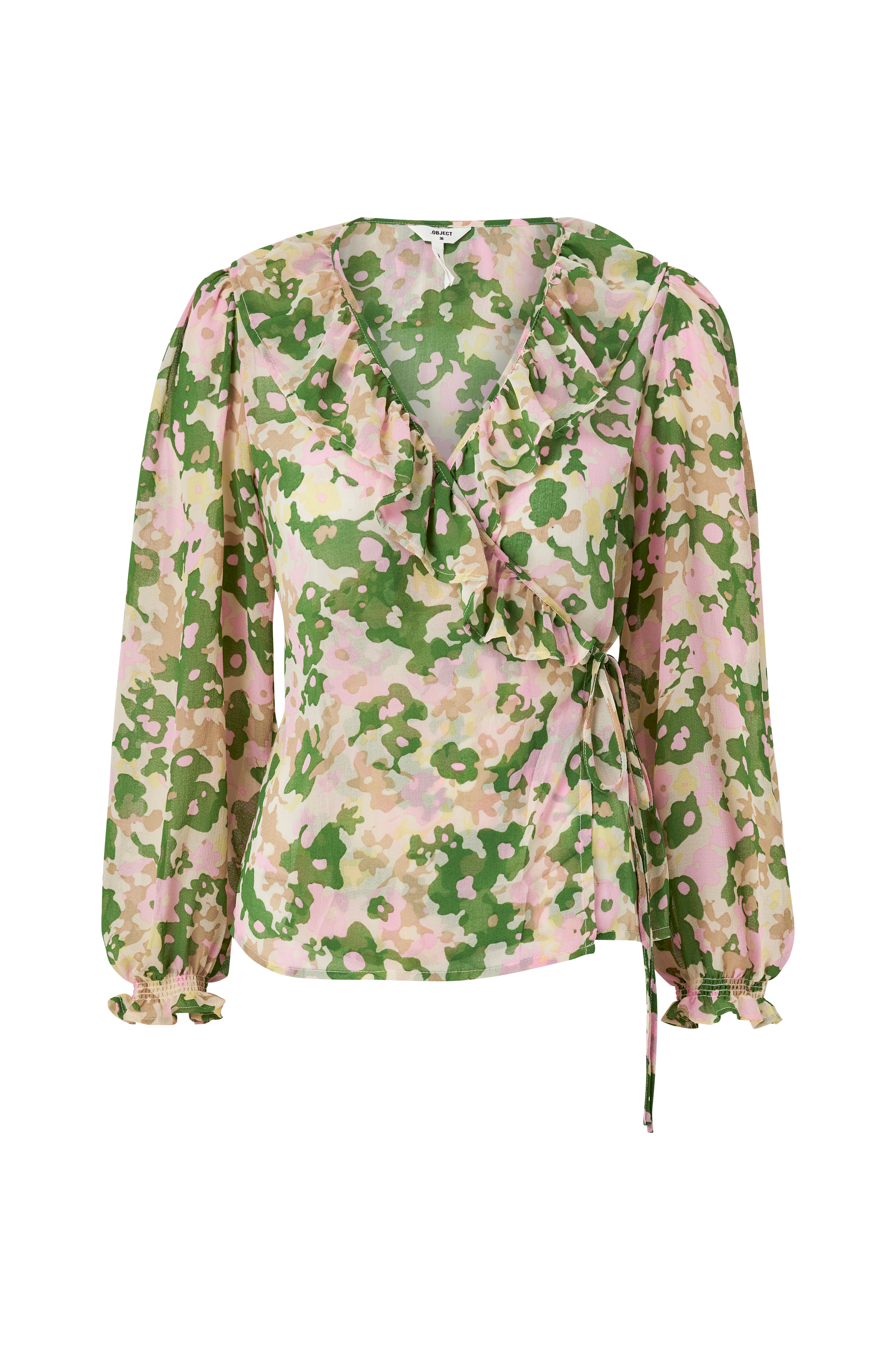 • Semitransparent omslagsbluse med volanger foran• Knytbar tråd i siden• Ballongermer med vaffelsøm i ermeslutten• Produktet inneholder gjenvunnet materiale som er brukt for å redusere mengden avfall, samtidig som det ikke er brukt nye ressurser.