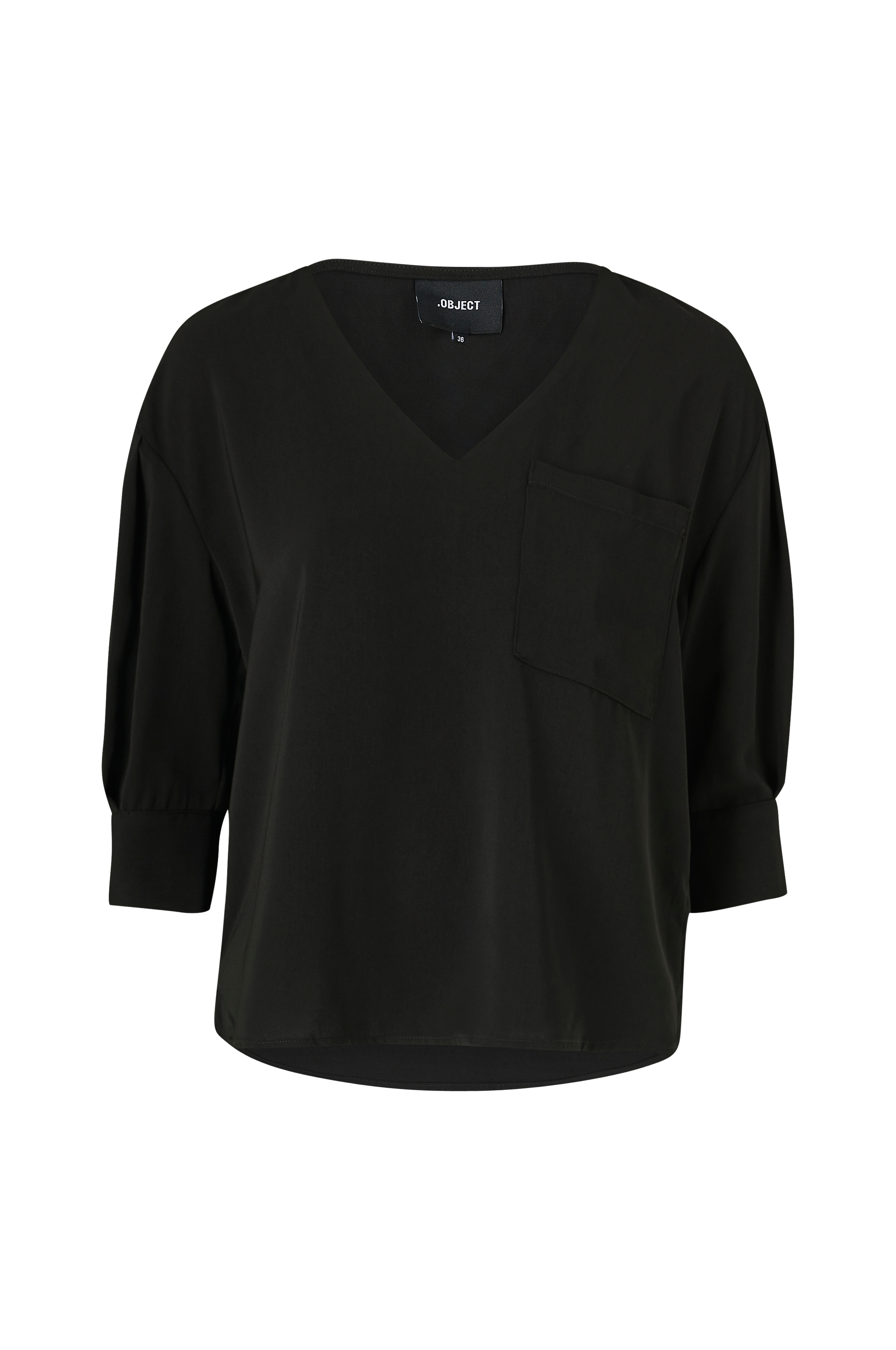 Bluse objMae 3/4 Top fra Object i V-utringet modell med brystlomme og 3/4-lange ermer med lav skuldersøm med legg og bred mansjett med knapper. Framstilt i vevd kvalitet.