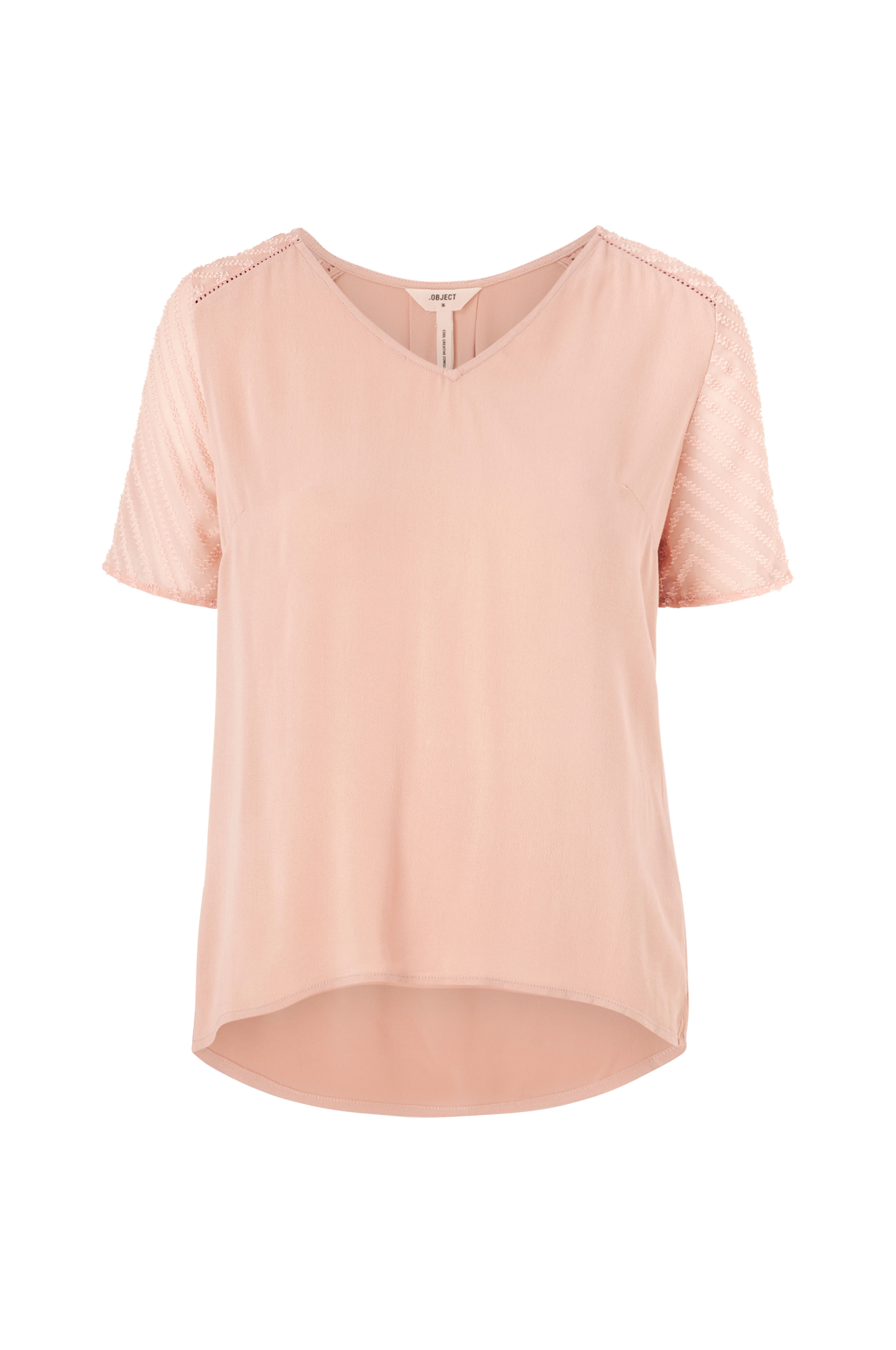 Bluse objZoe S/S V-neck Top fra Object i tynn, vevd kvalitet med transparente ermer i chiffon med strukturmønster.