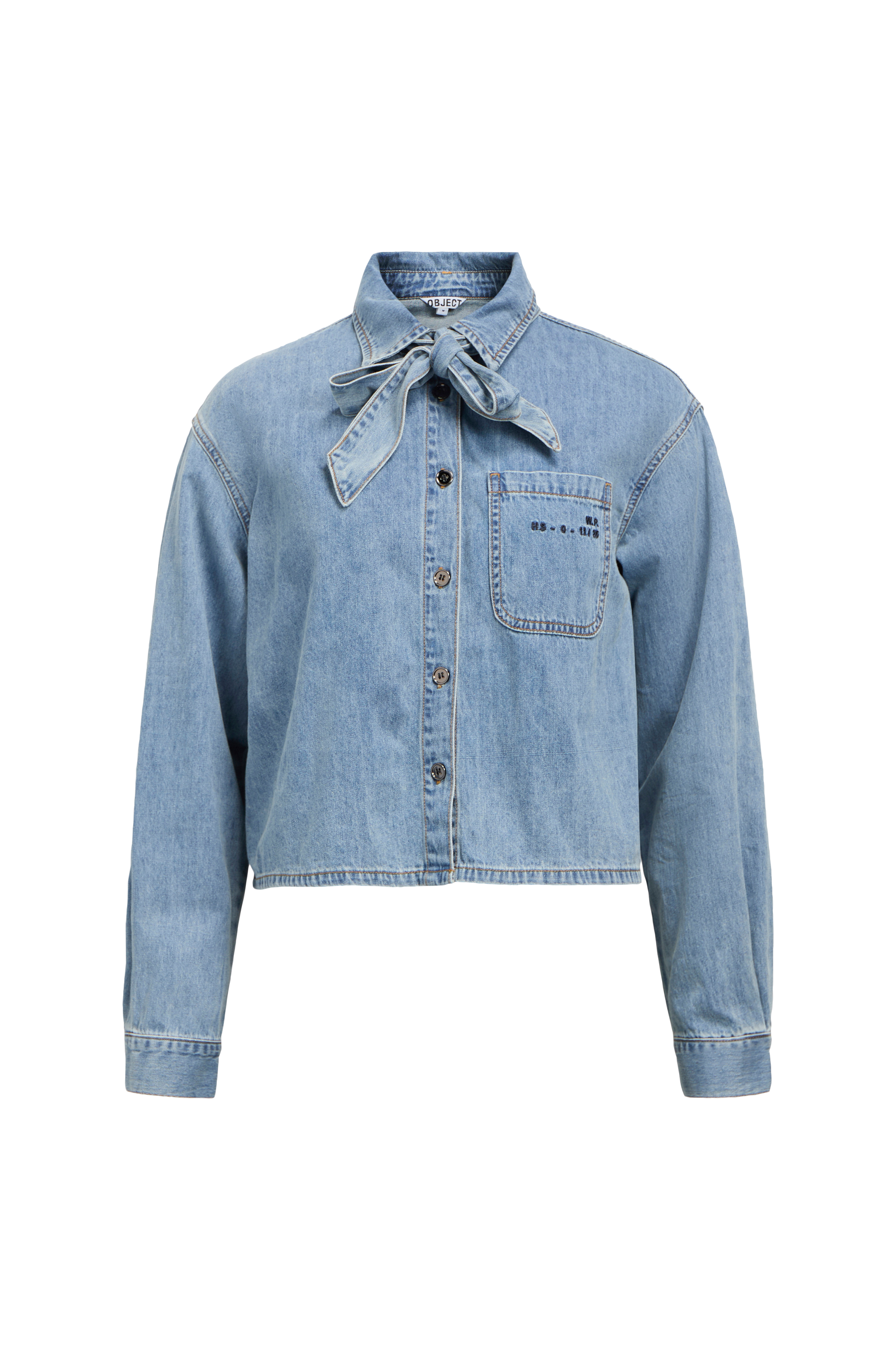 • Denimskjorte med knutedetalj rundt halsen