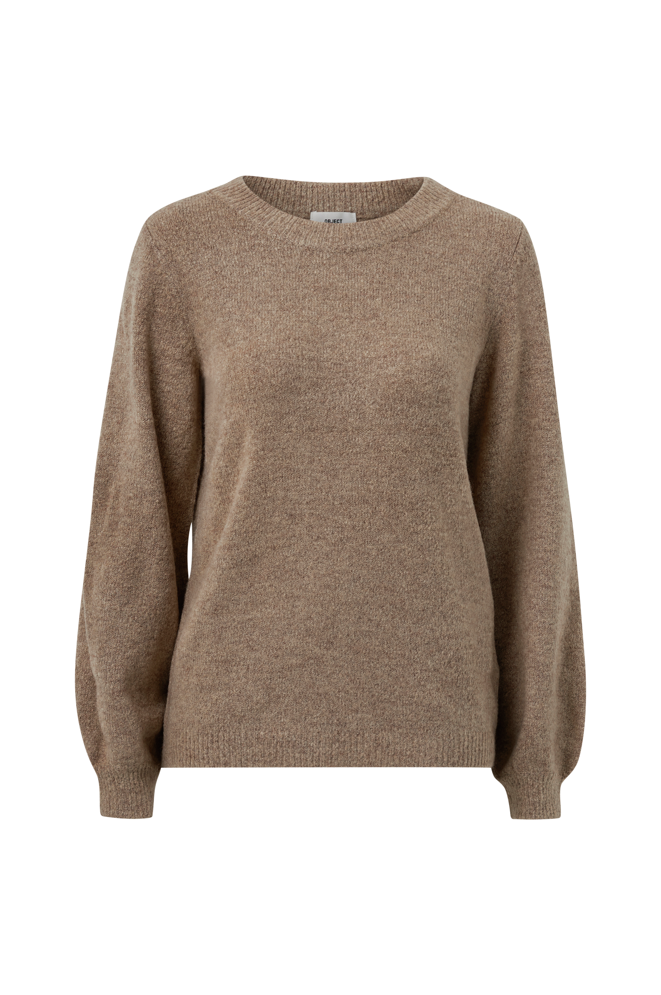 Genser objEve Nonsia LS Knit Pullover fra Object. Rett modell med ekstra lange, vide ermer med vrangbord i ermekantene. Rund hals med vrangbord, også vrangbord i nederkanten. Glattstrikket modell med melert effekt.
