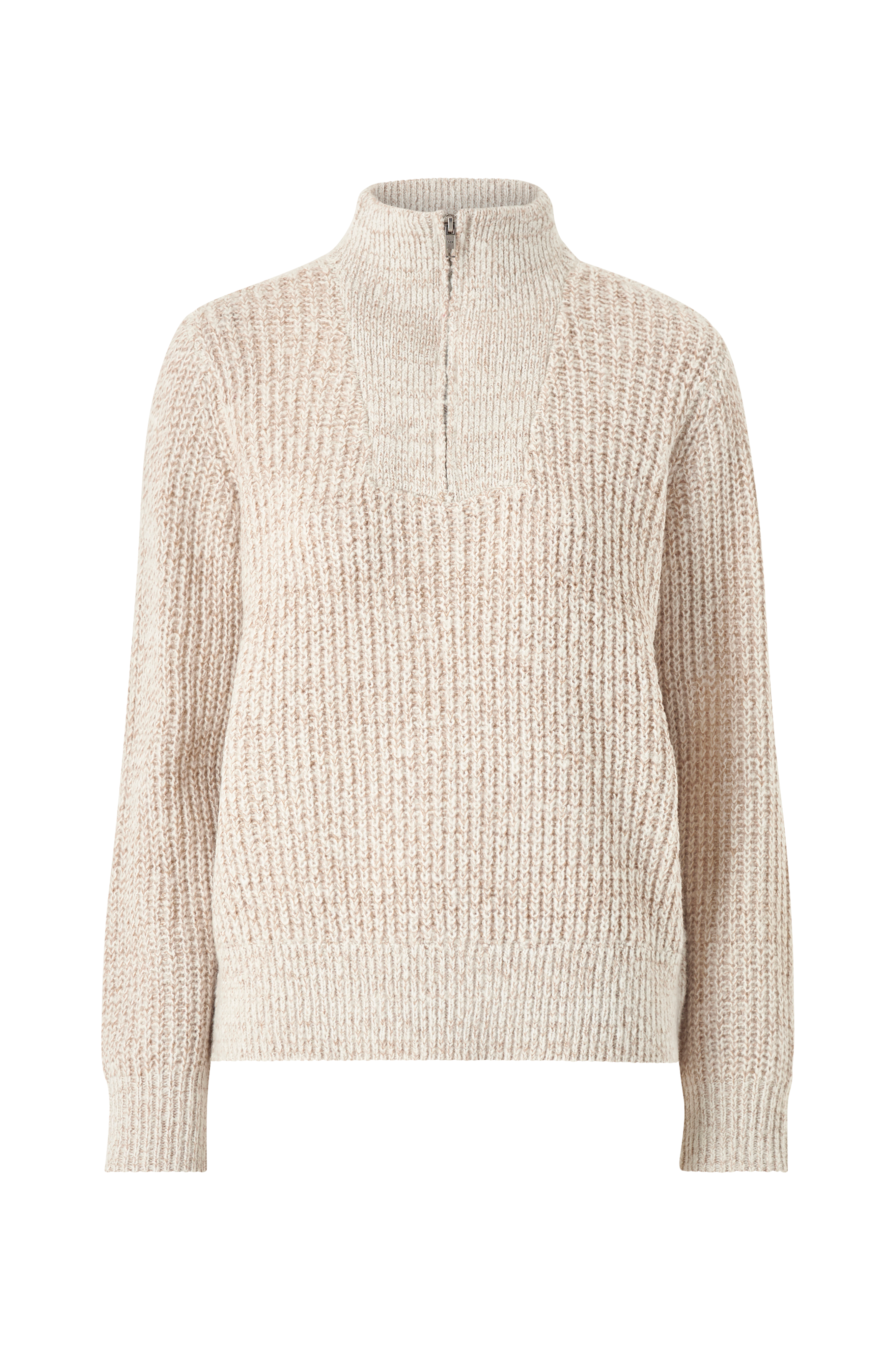 • Grovstrikket genser i bomullsblanding• Ståkrage med glidelås