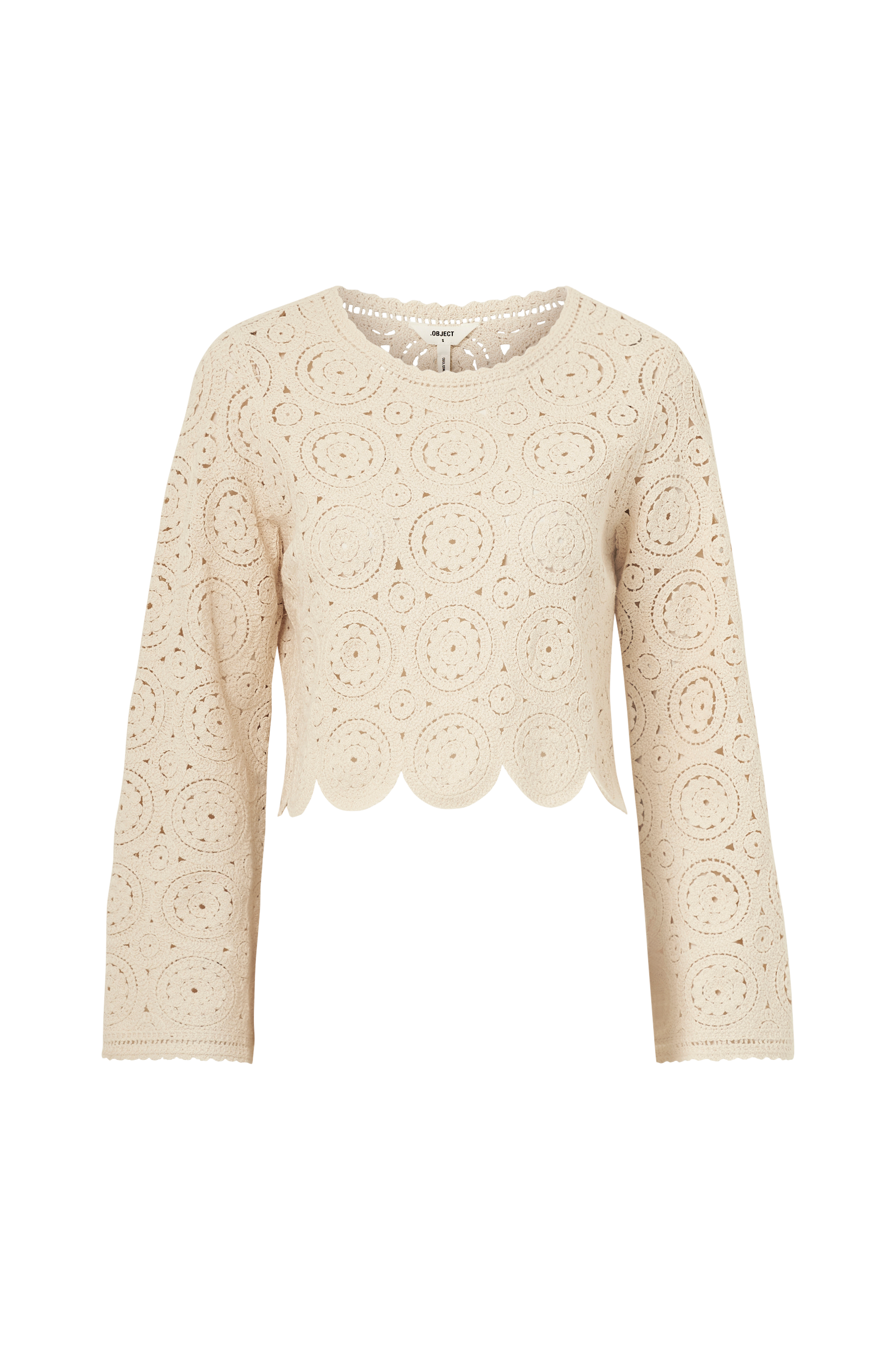 • Kort, bred modell• Bølget hem• Brede armer• Strikket mønster