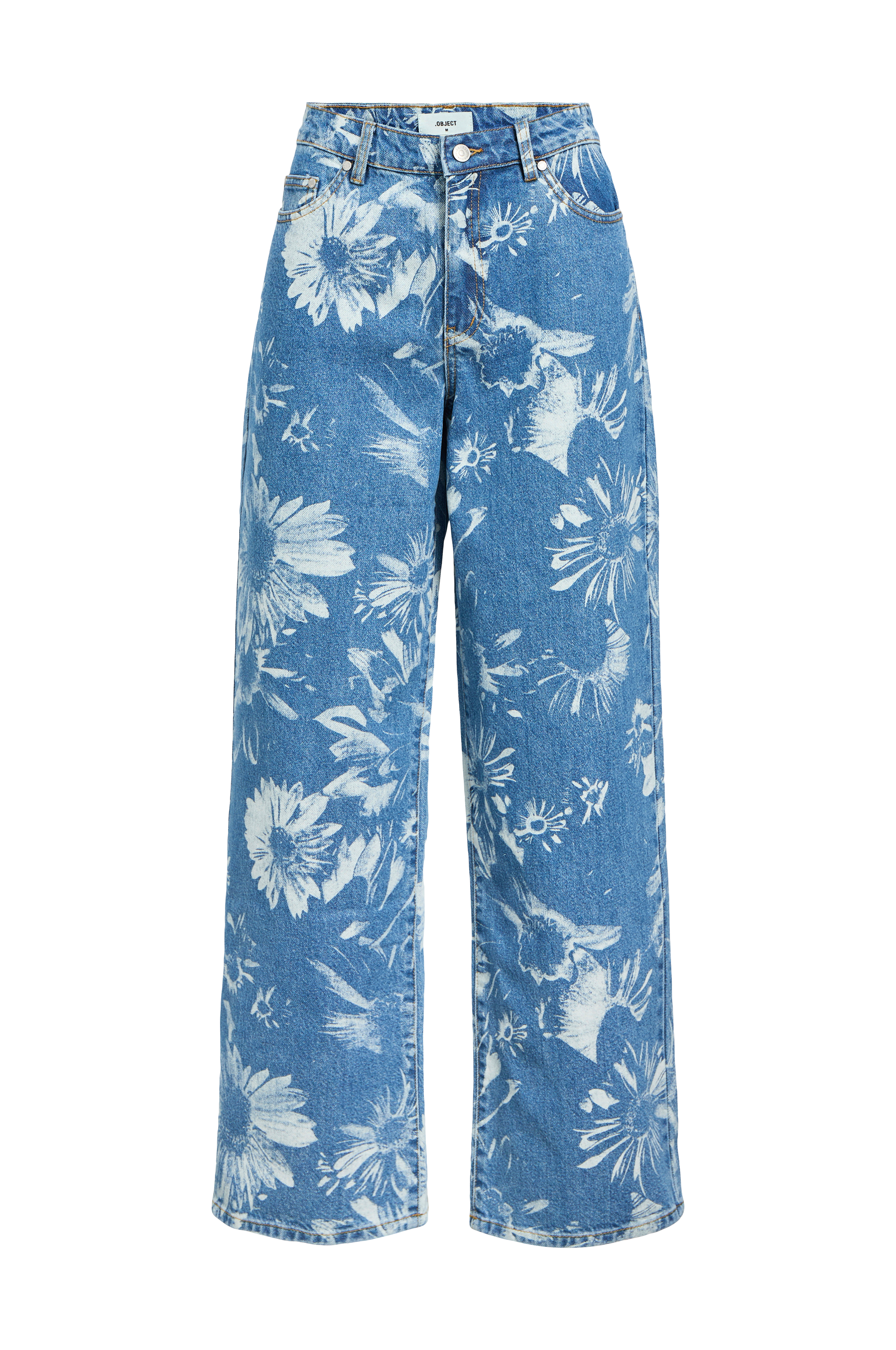 • Femlommemodell med trykket blomster mønster• Høy midje med lynlås• Brede, rette bein• Indre benlengde: 79 cm i størrelse S