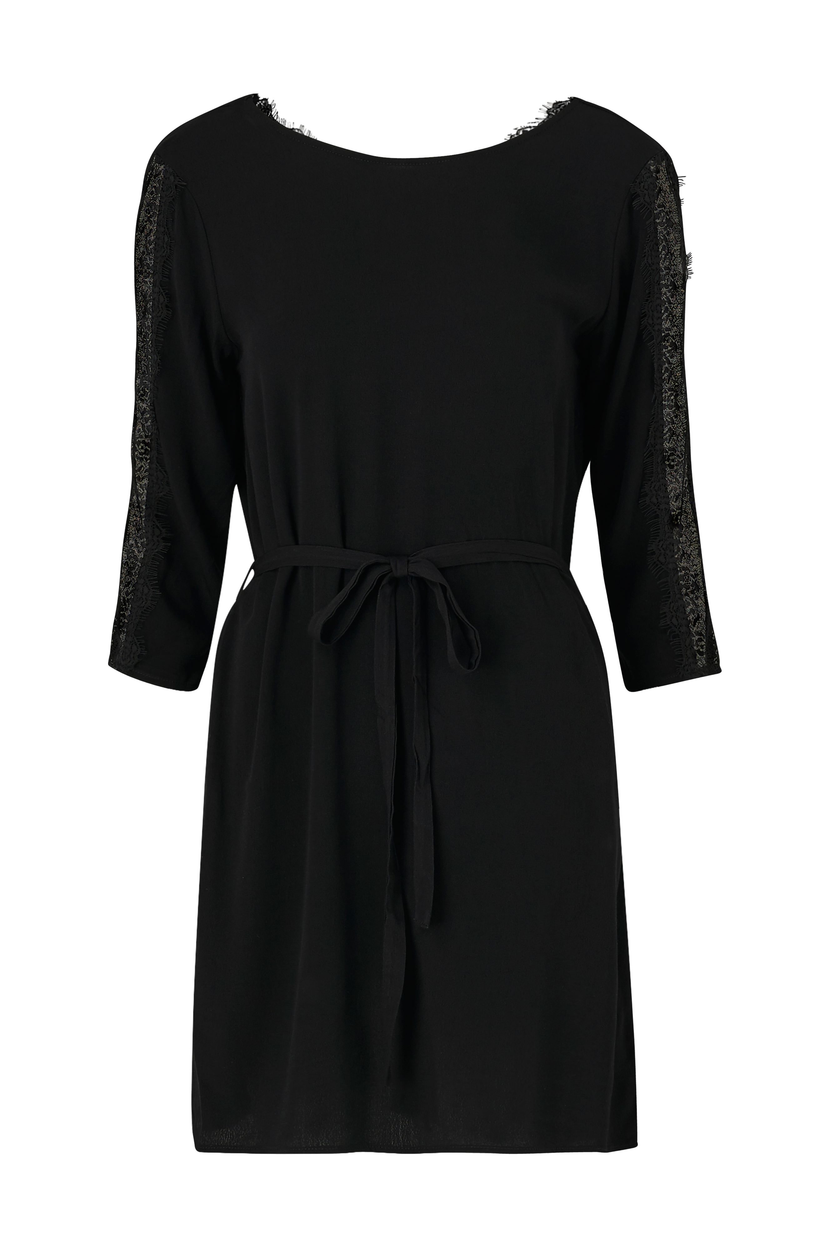 Kjole objLauren 3/4 Dress fra Object. Rund hals foran og lett V-utringning bak med en påsydd blondekant øverst. 3/4-lange ermer med detaljer i gjennombrutt blonde langs ermene. Avtagbart knytebånd i midjen. Lengde ca. 90 cm i str 36.