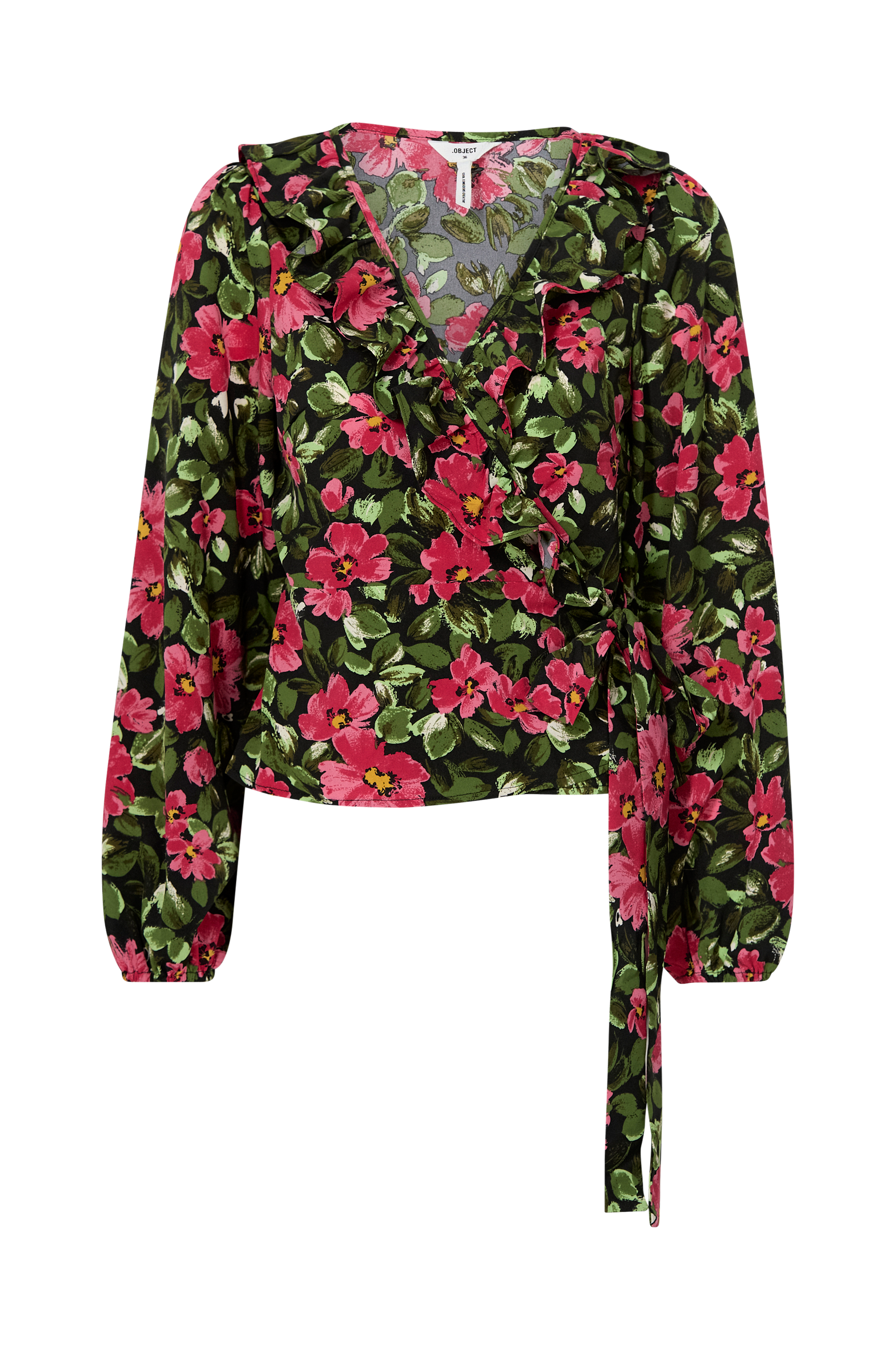 • Volang langs halsringningen• Lange ballongermer med elastiske mansjetter• Knytebånd ved midjen