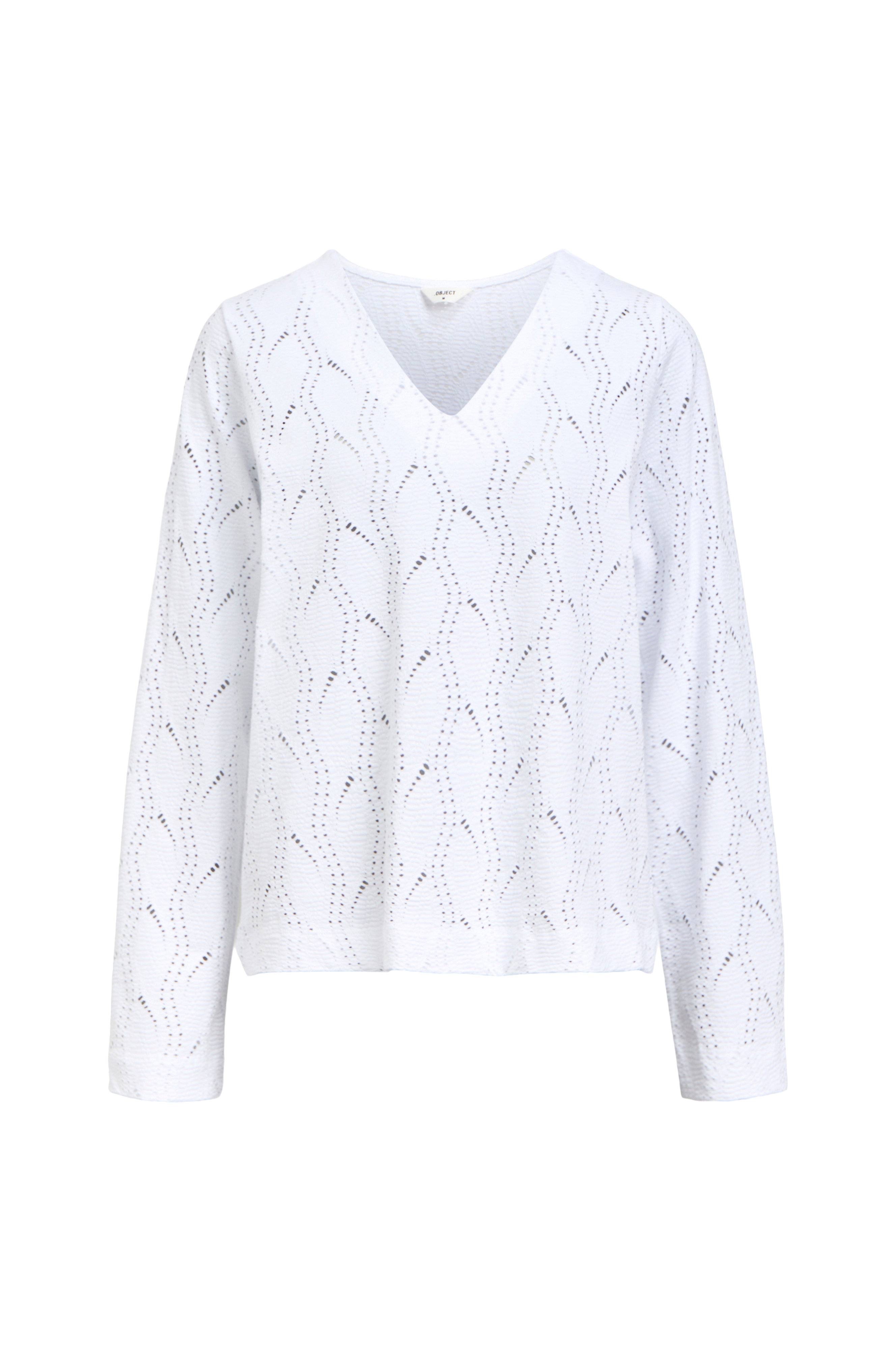 • Rett, strukturmønstret modell• V-formet hals• Langt, rett erme
