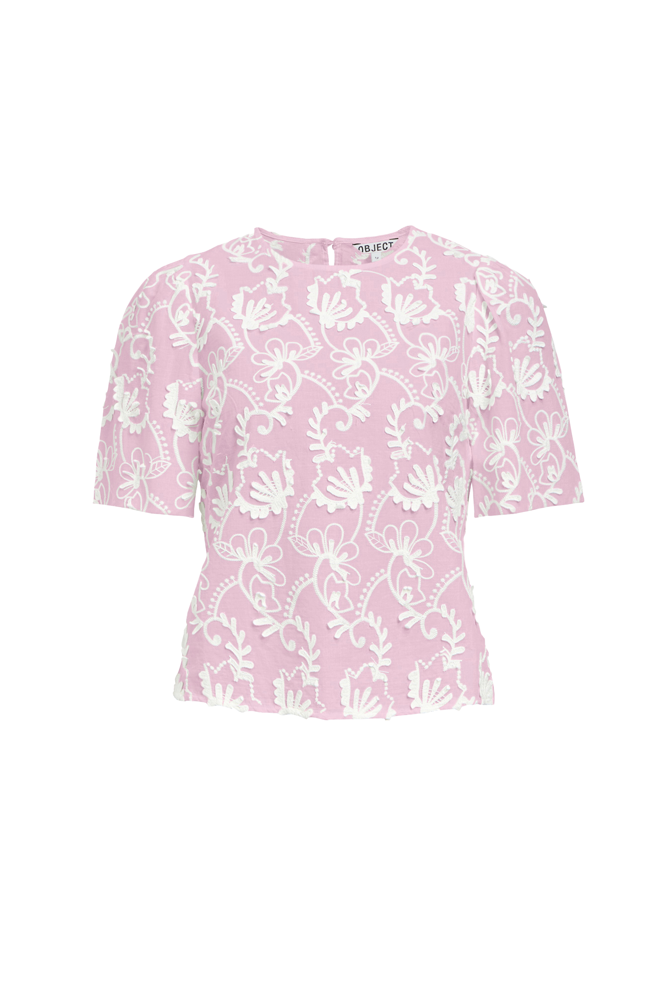 • Topp i luftig, lett materiale med brodert mønster• Korte puffermer• Avrundet hals• Åpning i ryggen med tre dekorative knapper