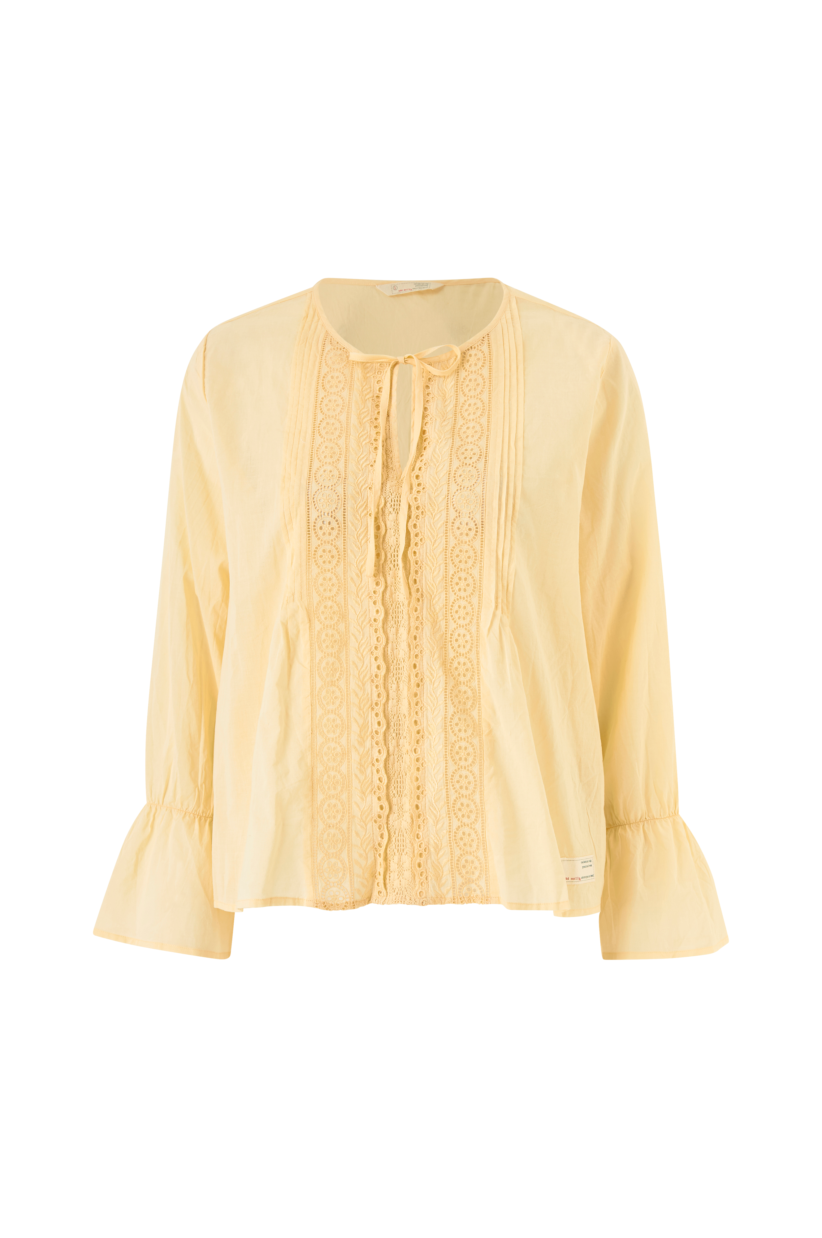 Bluse So Neat Blouse fra Odd Molly. Rett modell med mye vidde og lange ermer med strikk nederst. Rund hals med smal kant og blondeinnfelling foran samt rund hals med smal kant og knyting.