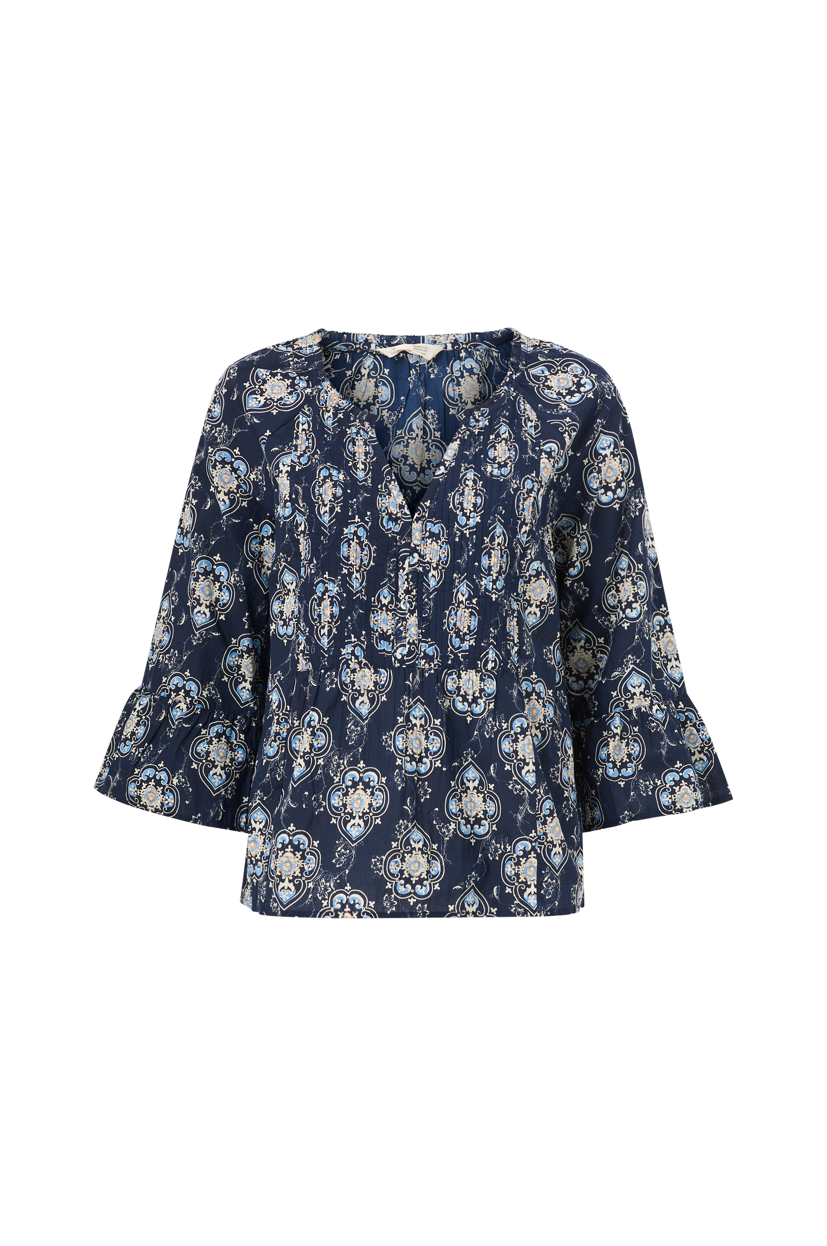 • V-hals snitt • Sydd folder foran • Armer 3/4 lang med volang i ermeslutten • Produktet inneholder økologisk bomull som er dyrket uten kjemiske sprøytemidler, kunstgjødsel og genmodifiserte avlinger (GMO). Det innebærer et sunnere arbeidsmiljø for bønder og et bedre jordsmonn.