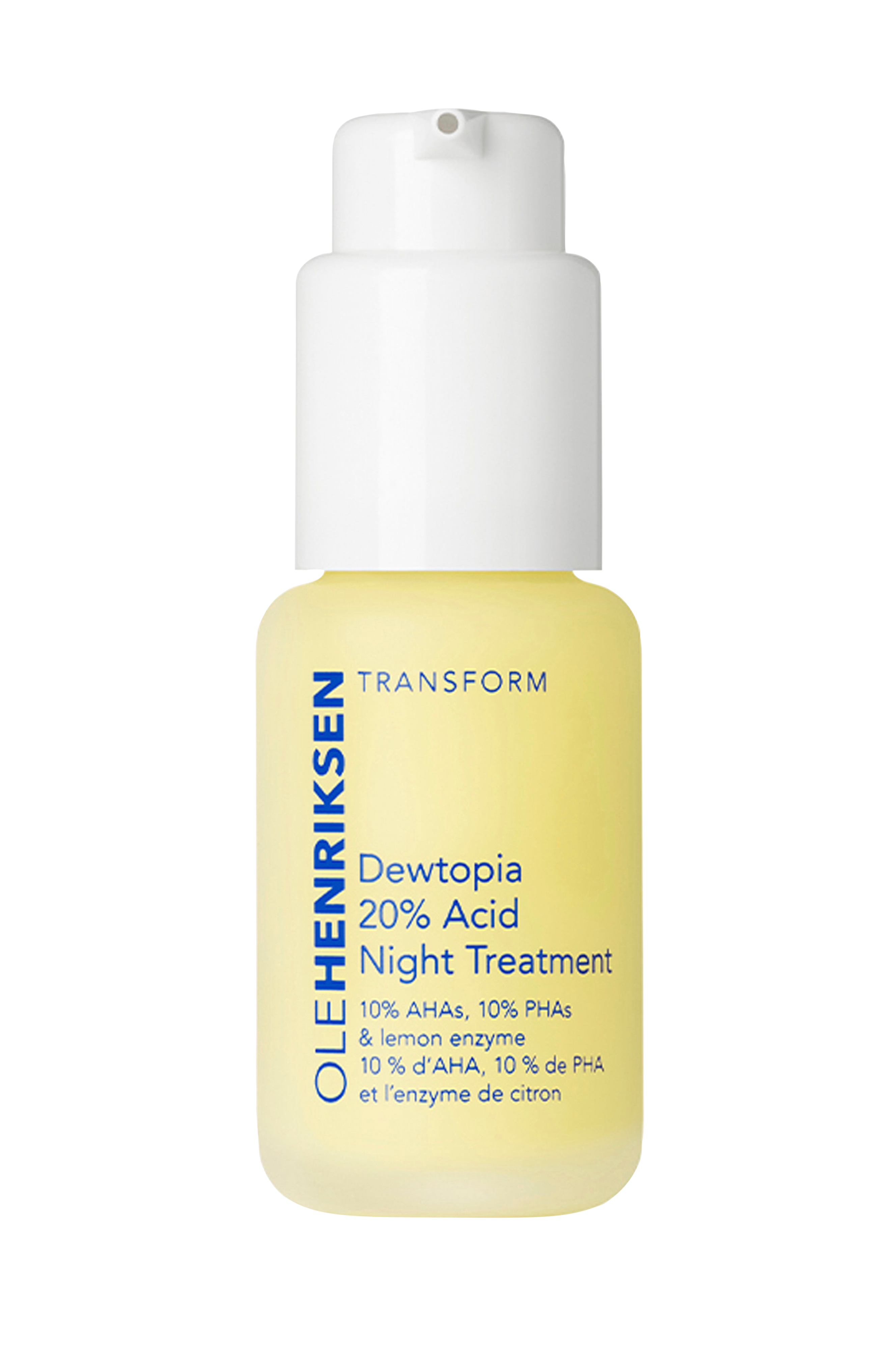 Våkne i Dewtopia: opplev skjønnhetssøvn på nytt ved å våkne med en perfekt fuktet, jevn hud. Ole Henriksen introduserer Dewtopia™ 20% Acid Night Treatment - et kraftfullt, utjevnende serum med syrer som gjør jobben når du sover. Dewtopia er et av Oles mest potente produkter hittil med 20% syre, 10% AHA og 10% PHA. Resultatet? Våkne opp med en betraktelig mykere, klarere og mer fornyet hud. Inneholder bjørkesaft, bomullsvann og aloejuice som har beroligende og pleiende egenskaper på huden. Formelen er helt vegansk og passer alle hudtyper. Dufter søtt av sitrus.