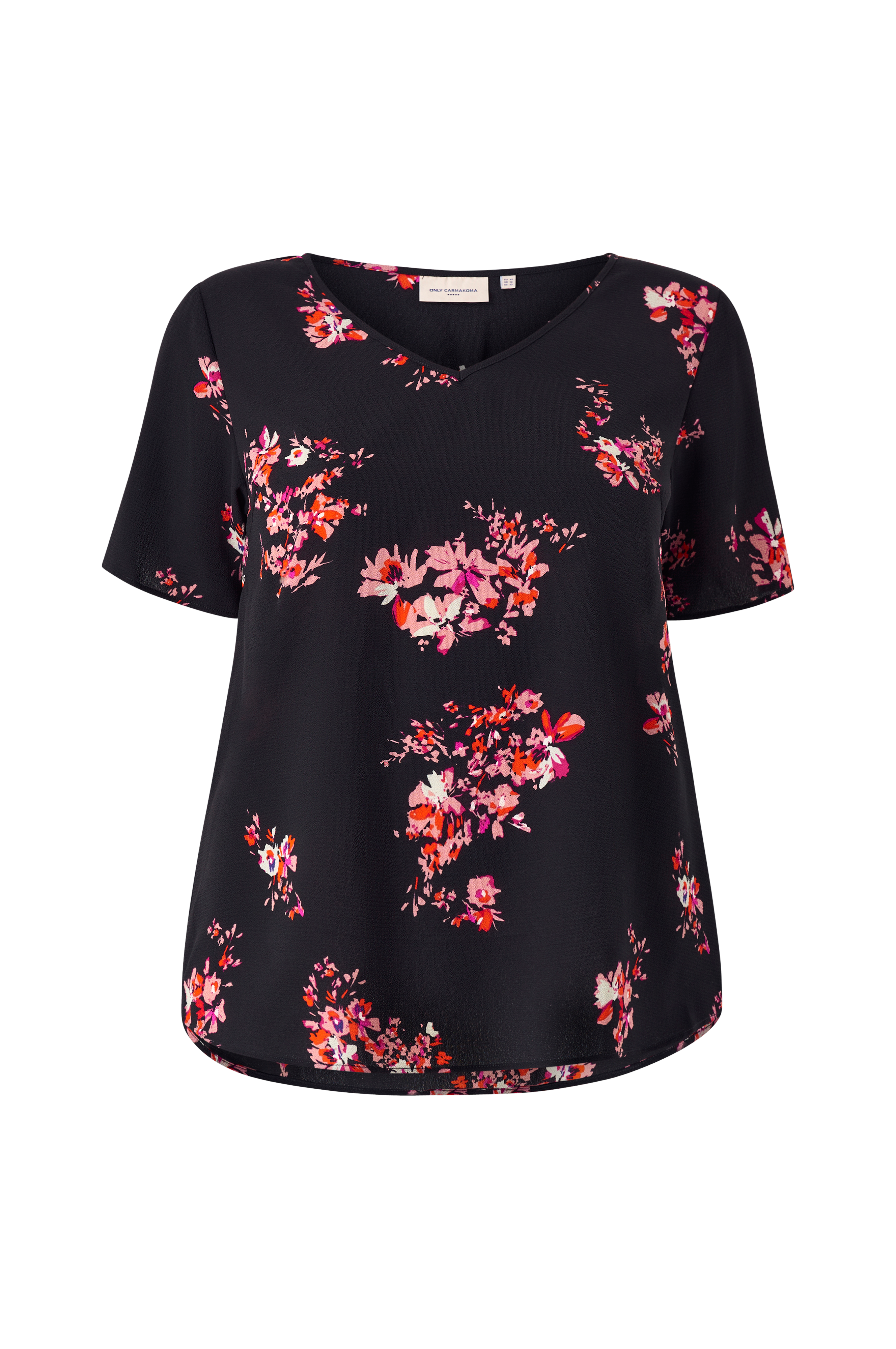 • Korte ermer• V-hals snitt• Kreppet kvalitet• Plusstørrelser