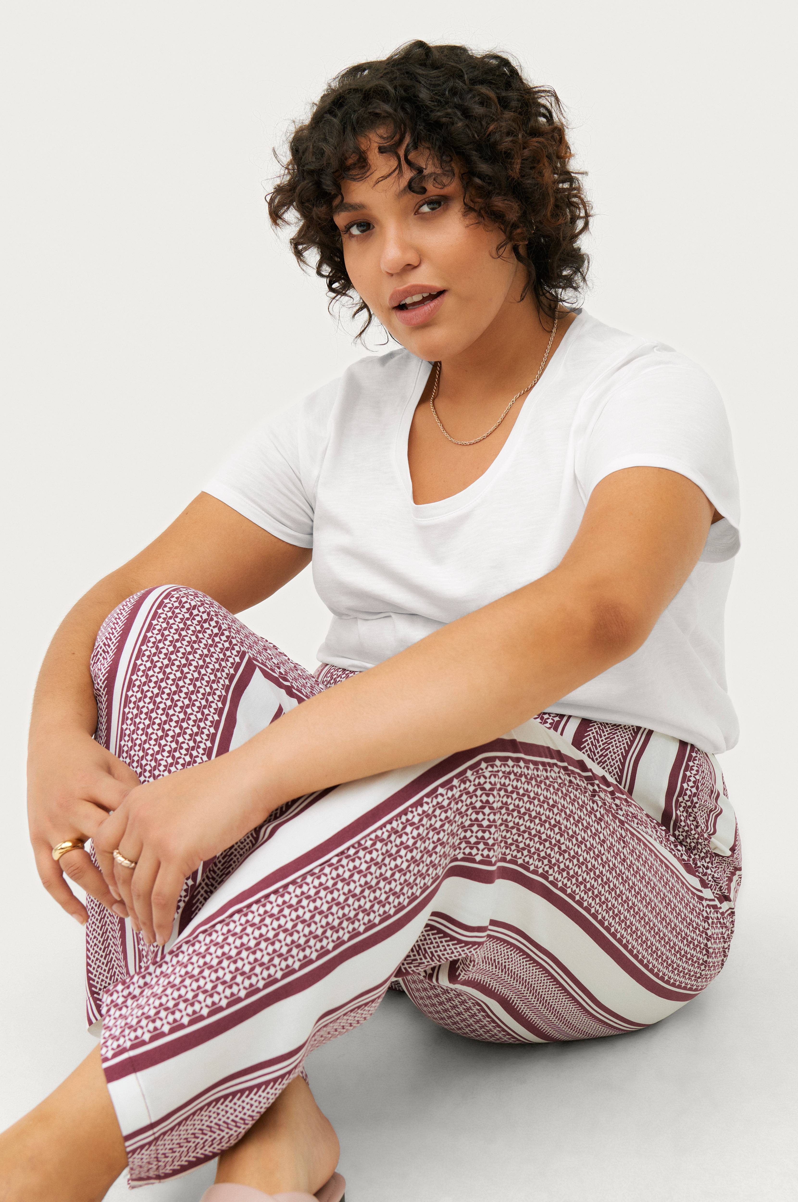 • Elastisk midje• Lommer i sidene• Brede bein• Plusstørrelser