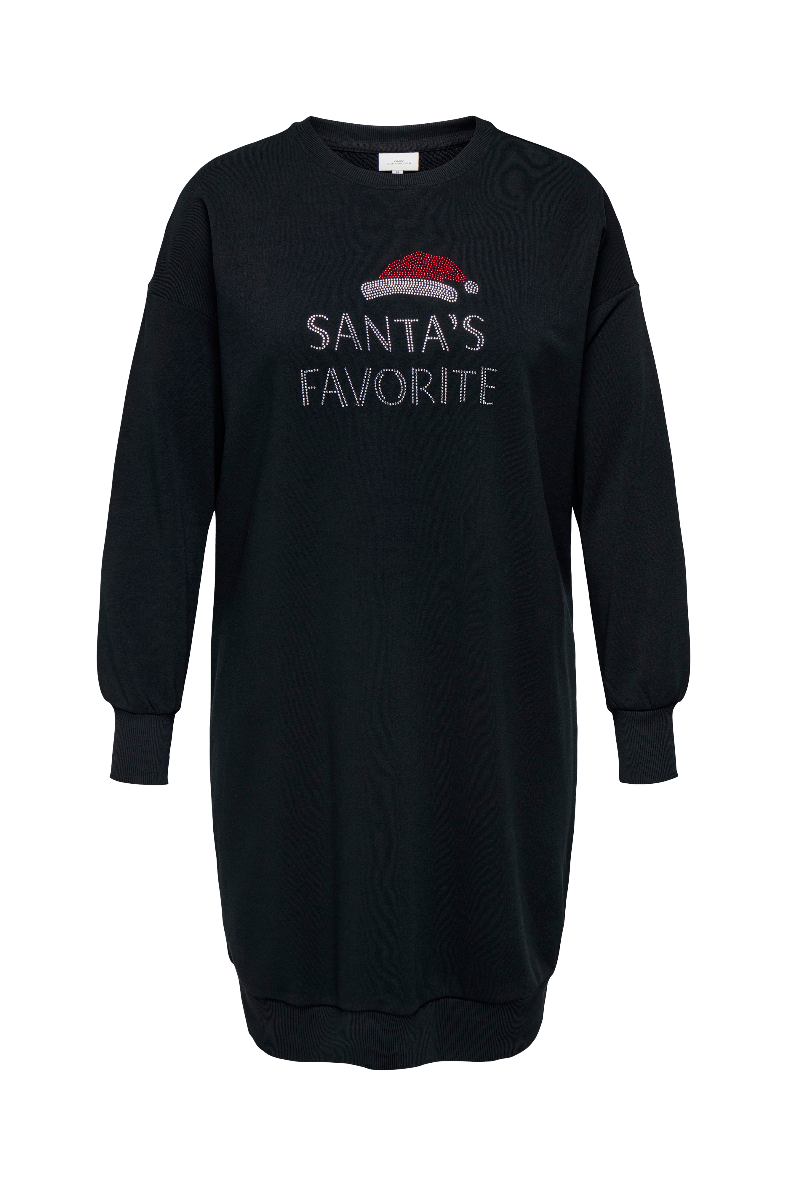 • Kjole i genser med avslappet passform• Rund, ribbet hals• Lange ermer med utringede skuldre og ribbet mansjetter i ermeslutten• Tekst i strass foran• Ribbet mansjett i nedre kant• Pluss-størrelser• Lengde: 105 cm i størrelse S