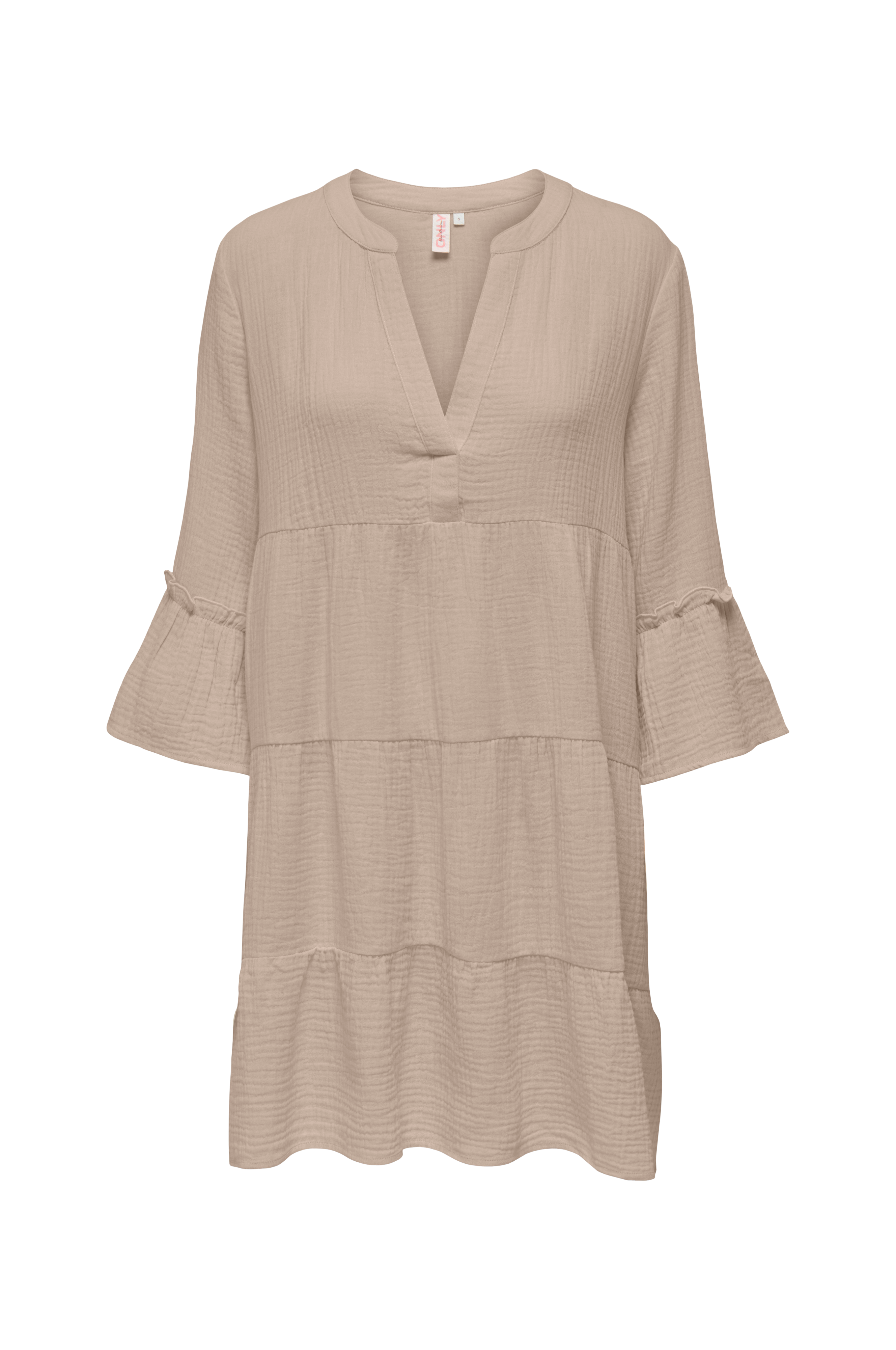 • Utsvingt modell• Myk, mønstret kvalitet• V-hals snitt• Ermer 3/4 lang med volang• Volang på bunnen• Plusstørrelser• Lengde: 100 cm i størrelse 42