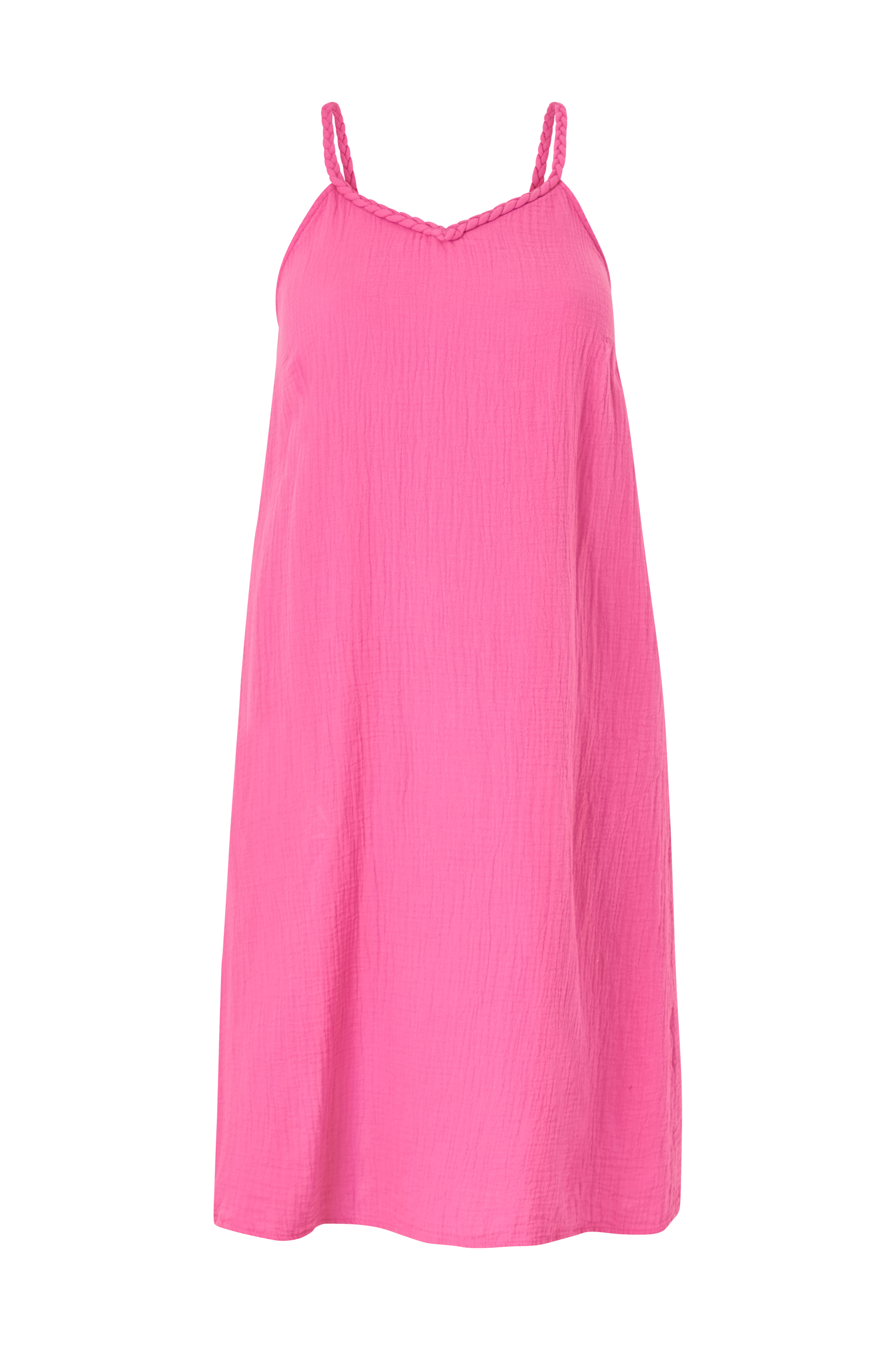 • Ermløs kjole i mønstret bomull• Flettete skulderstropper• V-hals snitt med flettet kant• Plusstørrelser• Lengde: 114 cm i størrelse 42