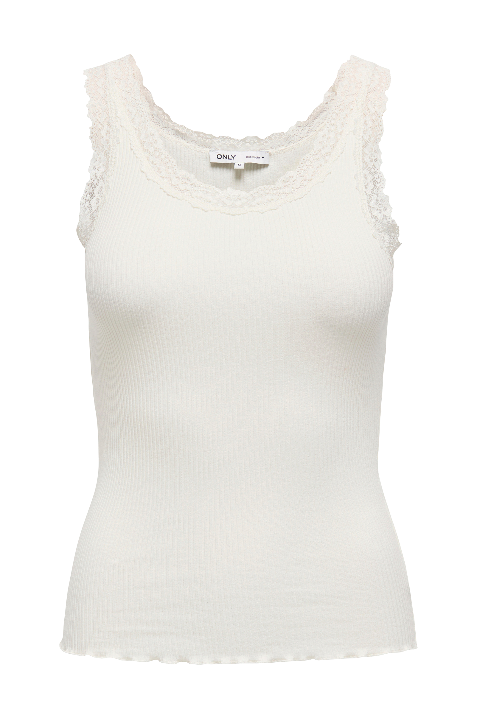 • Ribbet singlet i bomullsjersey• Blondedetaljer• Bølget kant på bunnen• Pluss-størrelser