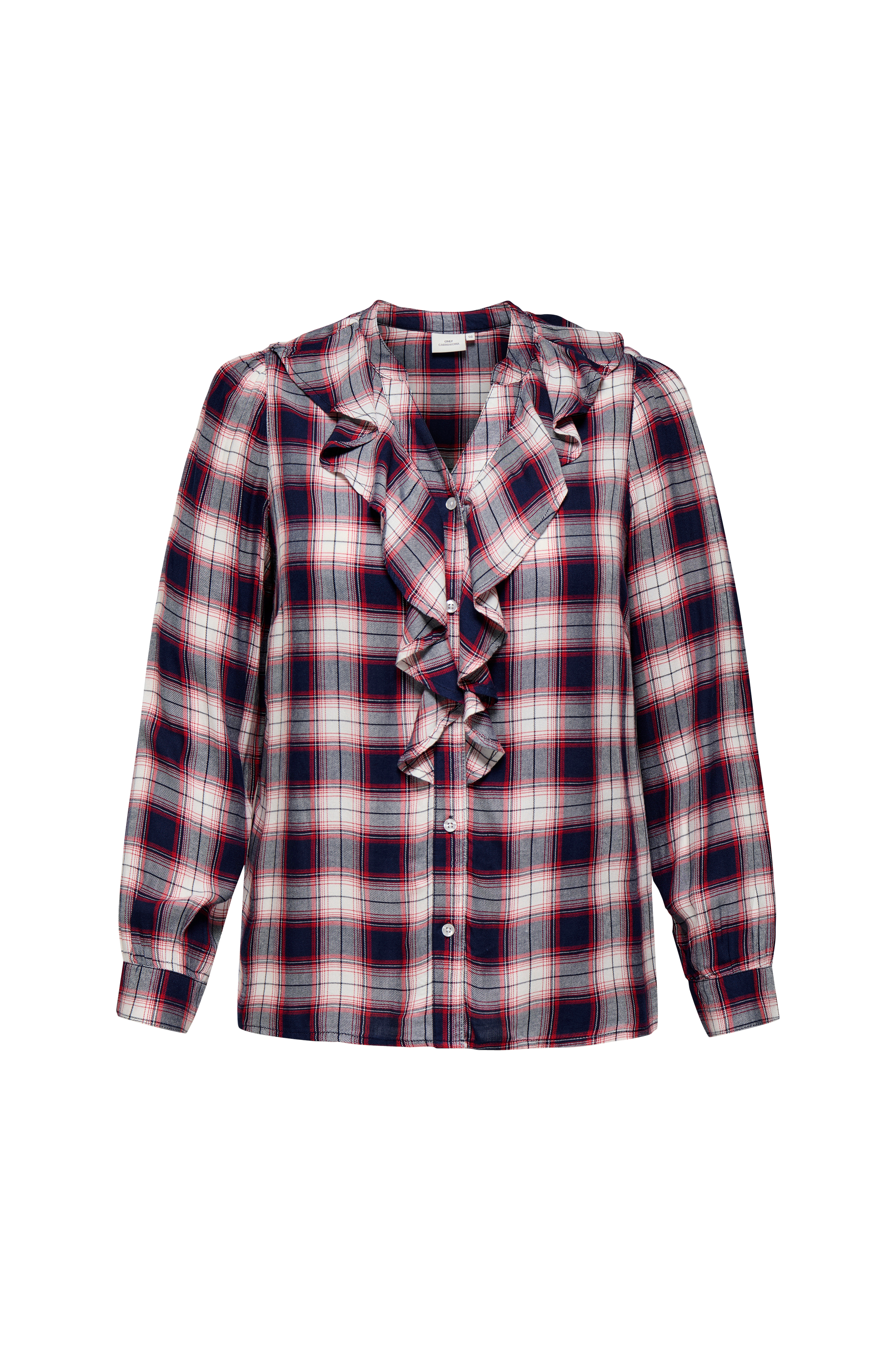 • Rutete skjorte i viskose• Rund hals med skjær foran• Volanger foran og rundt halsen• Lange ermer med mansjett i ermeslutten• Knappstolpe foran• Pluss-størrelser
