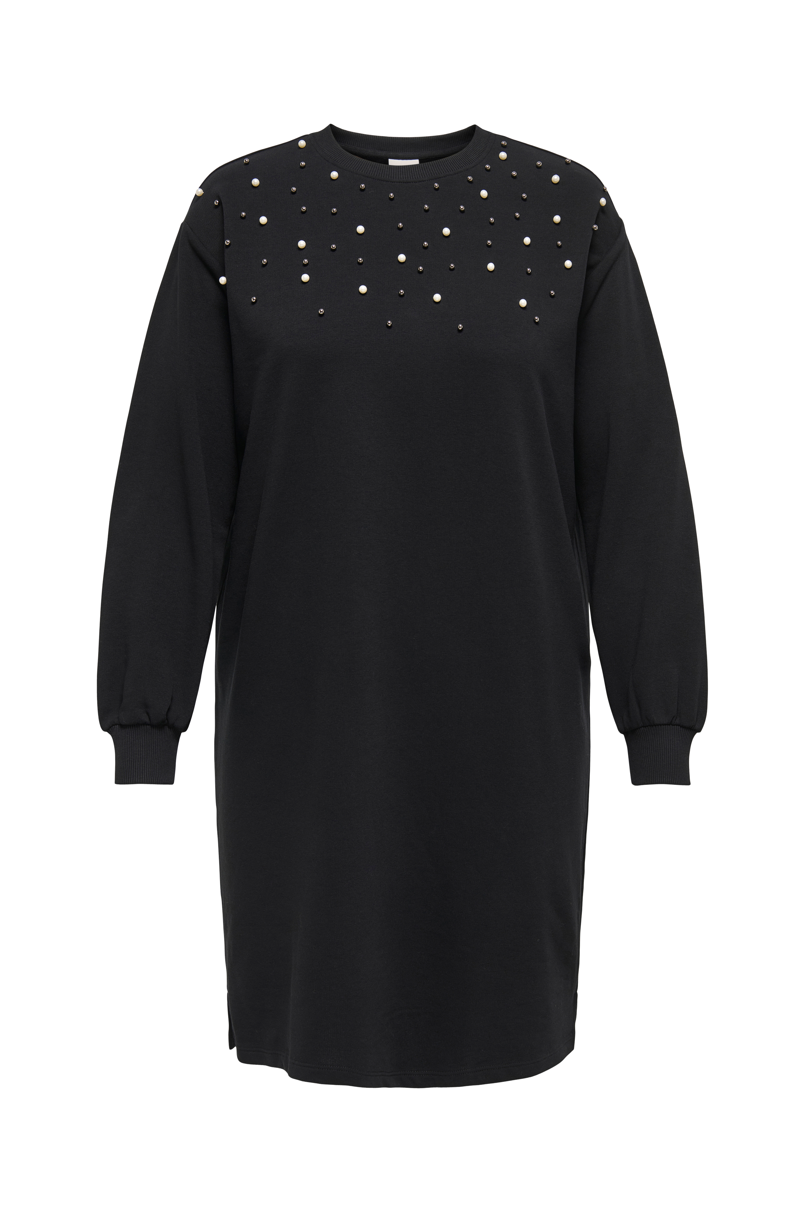 • Kjole i genser• Rund, ribbet hals• Dekorative perler oppover foran• Lange ermer med ribbet mansjetter• Skjær nede i sidene• Pluss-størrelser• Lengde: 106 cm i størrelse S