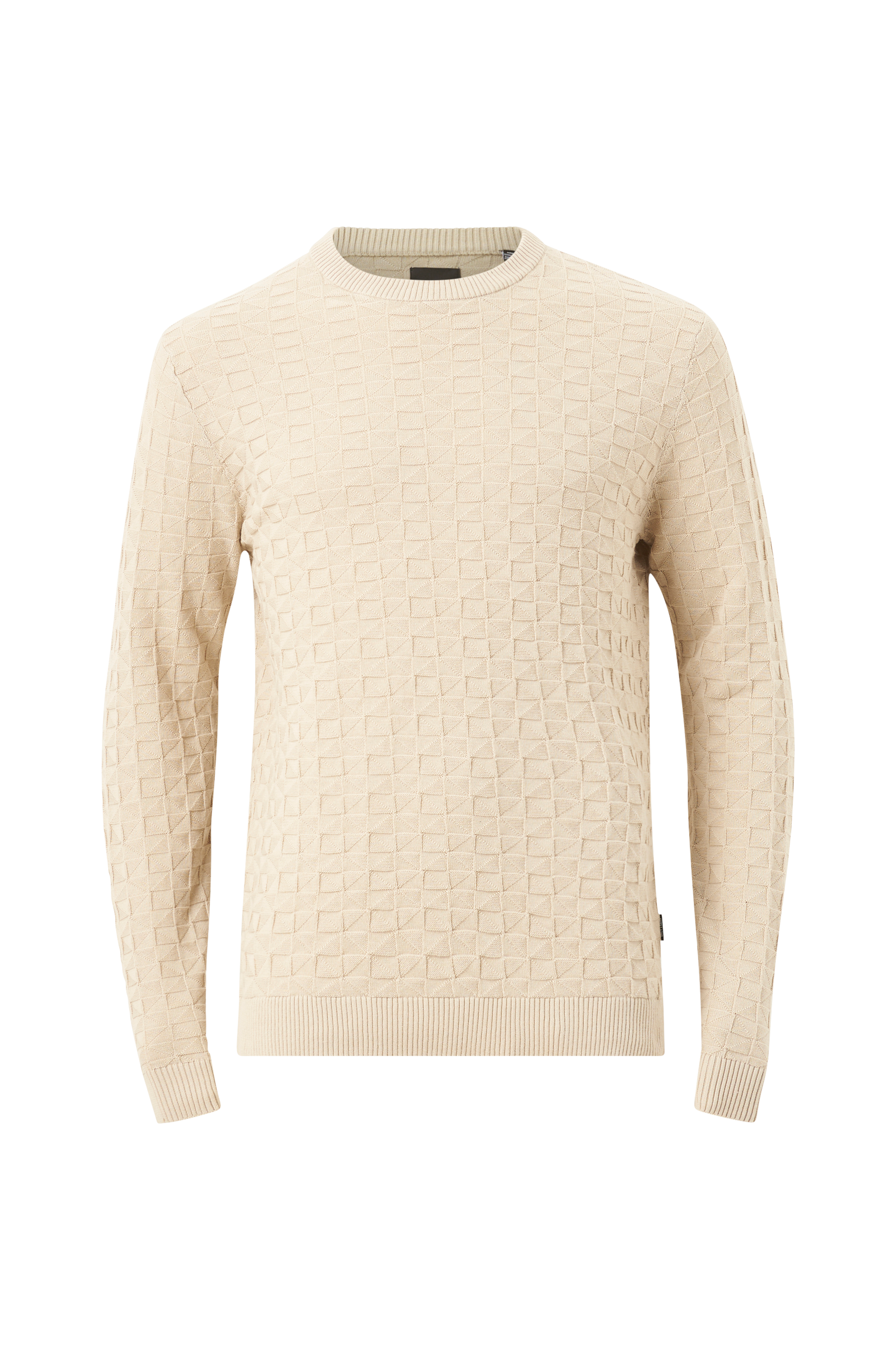 • Strukturstrikket genser• Ribbestrikk i ermeslutten og på bunnen