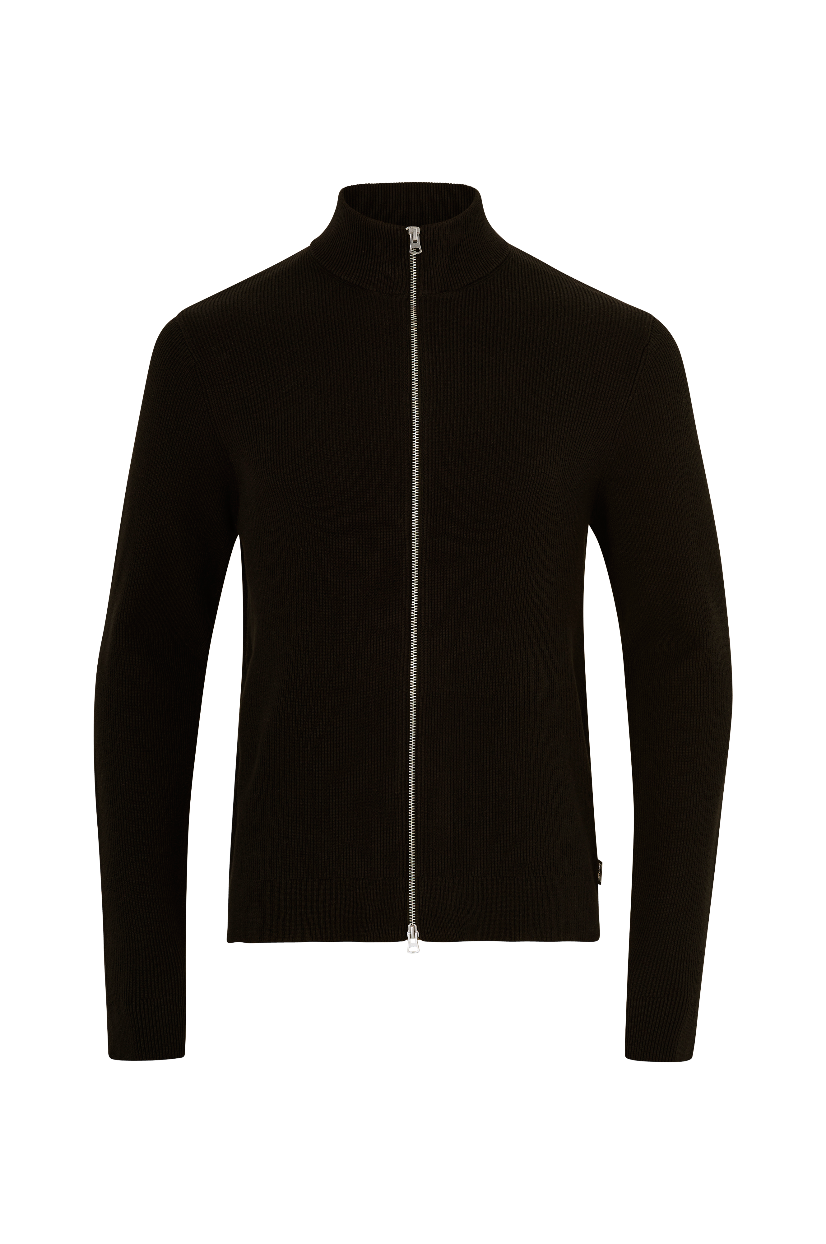 • Ribbestrikket kardigan med glidelås• Ståkrage• Rett passform