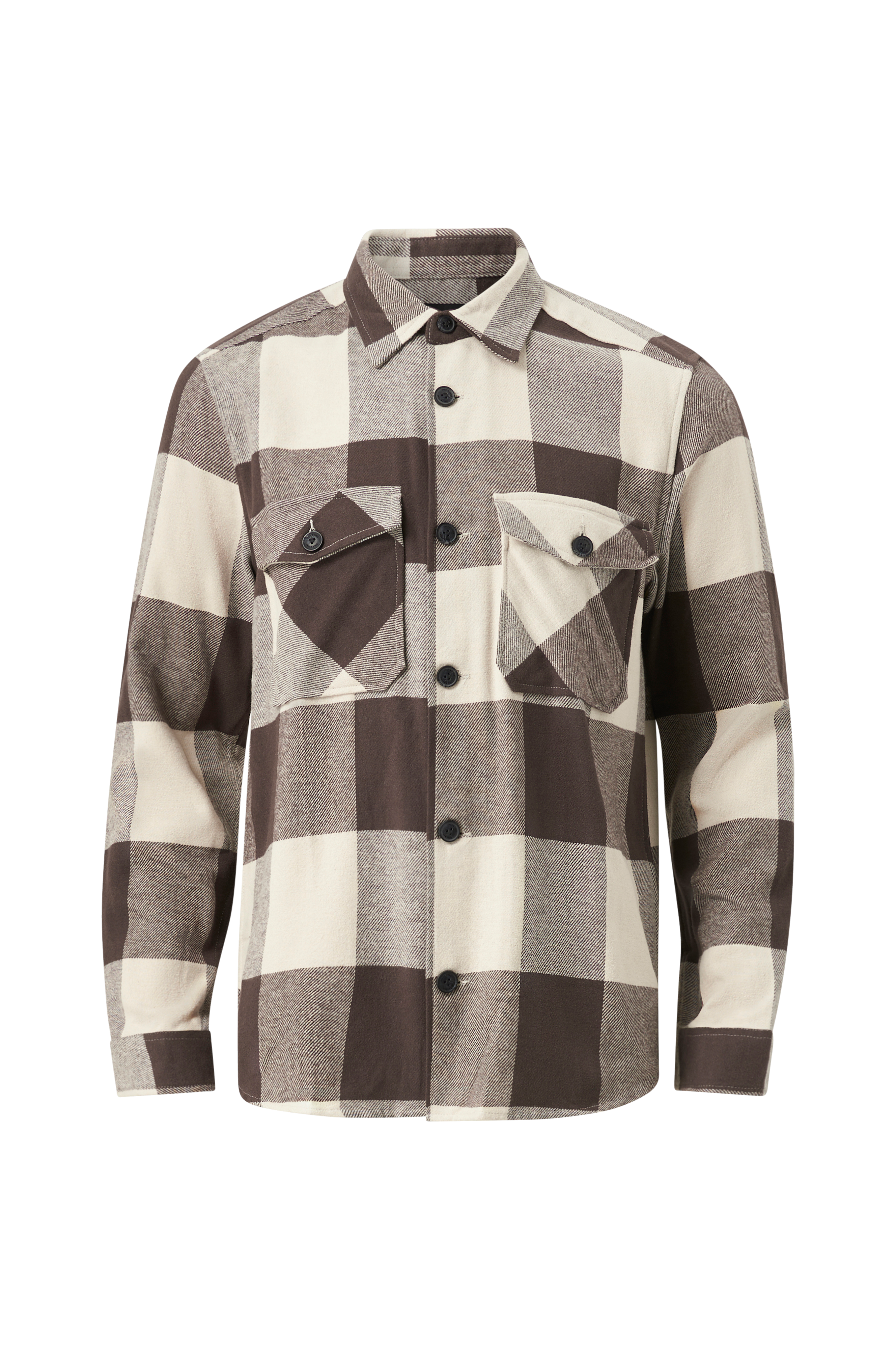 Overshirt i bomullsflanell med rutete mønster. To brystlommer med knappeklaff. Knapper i ermekantene.
