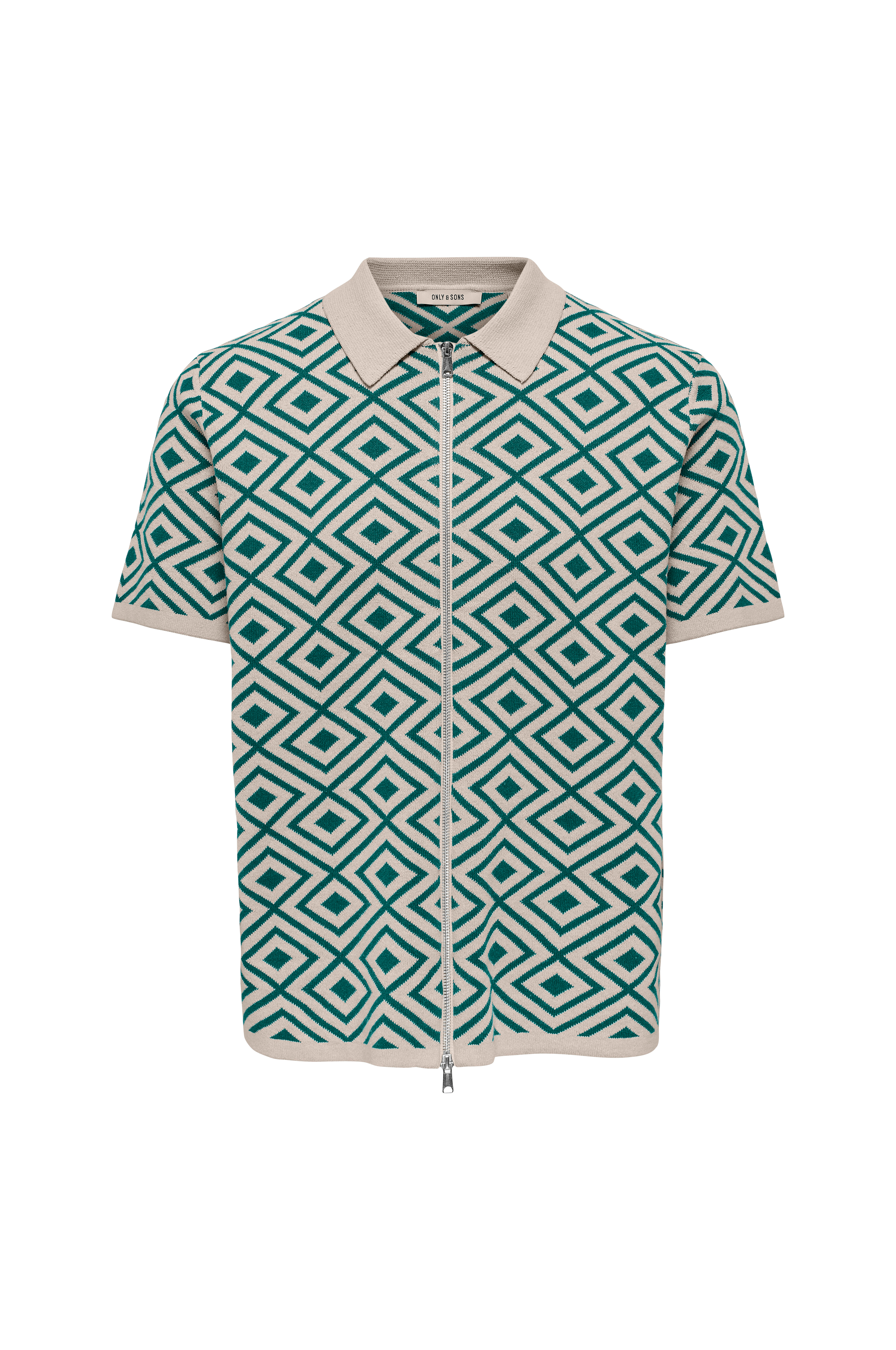 • Kortermet skjorte i jacquardstrikket bomullsblanding med mønster• Rund hals med krage• To-veis glidelås foran• Ribbestrikk i ermeslutten og i nedre kant