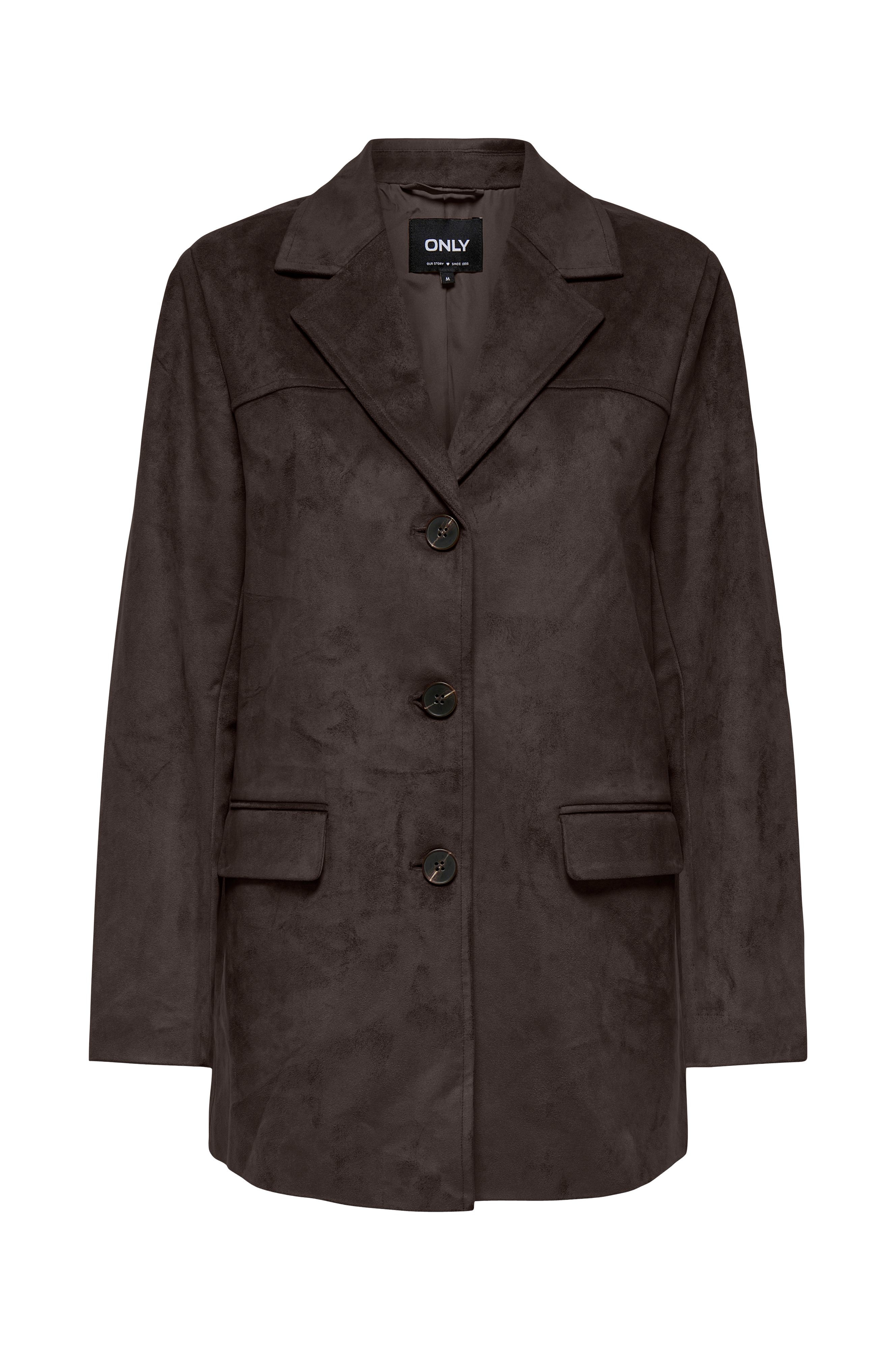 • Blazer i semsket skinnimitasjon• Krage med jakkeslag• Knappelukking• Tekstilfôr• To lommer med lokk• Splitt nedover ryggen• Lengde: 72 cm i størrelse S