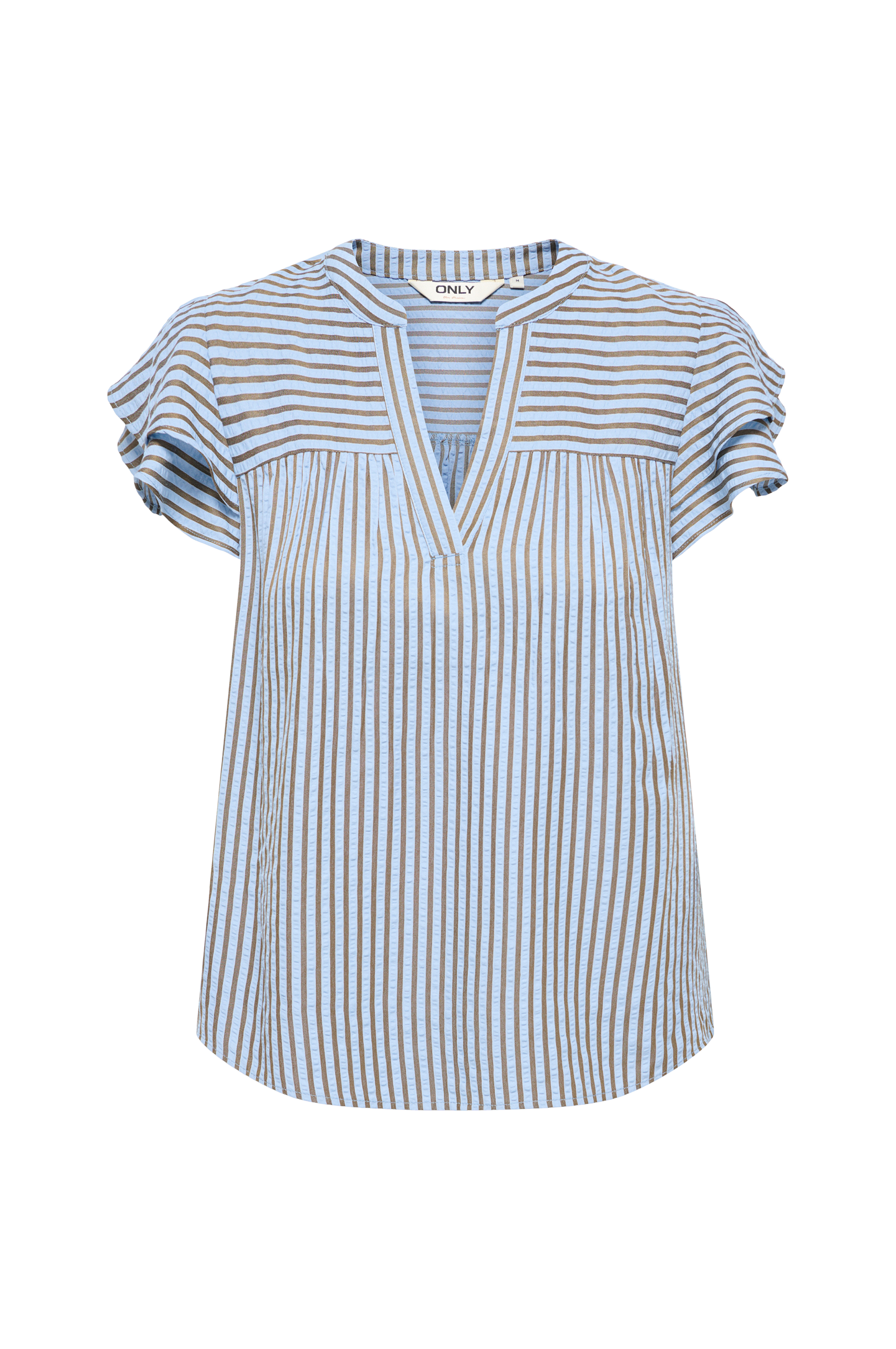 • Bluse i seersucker• V-formet hals• Korte volangtermer