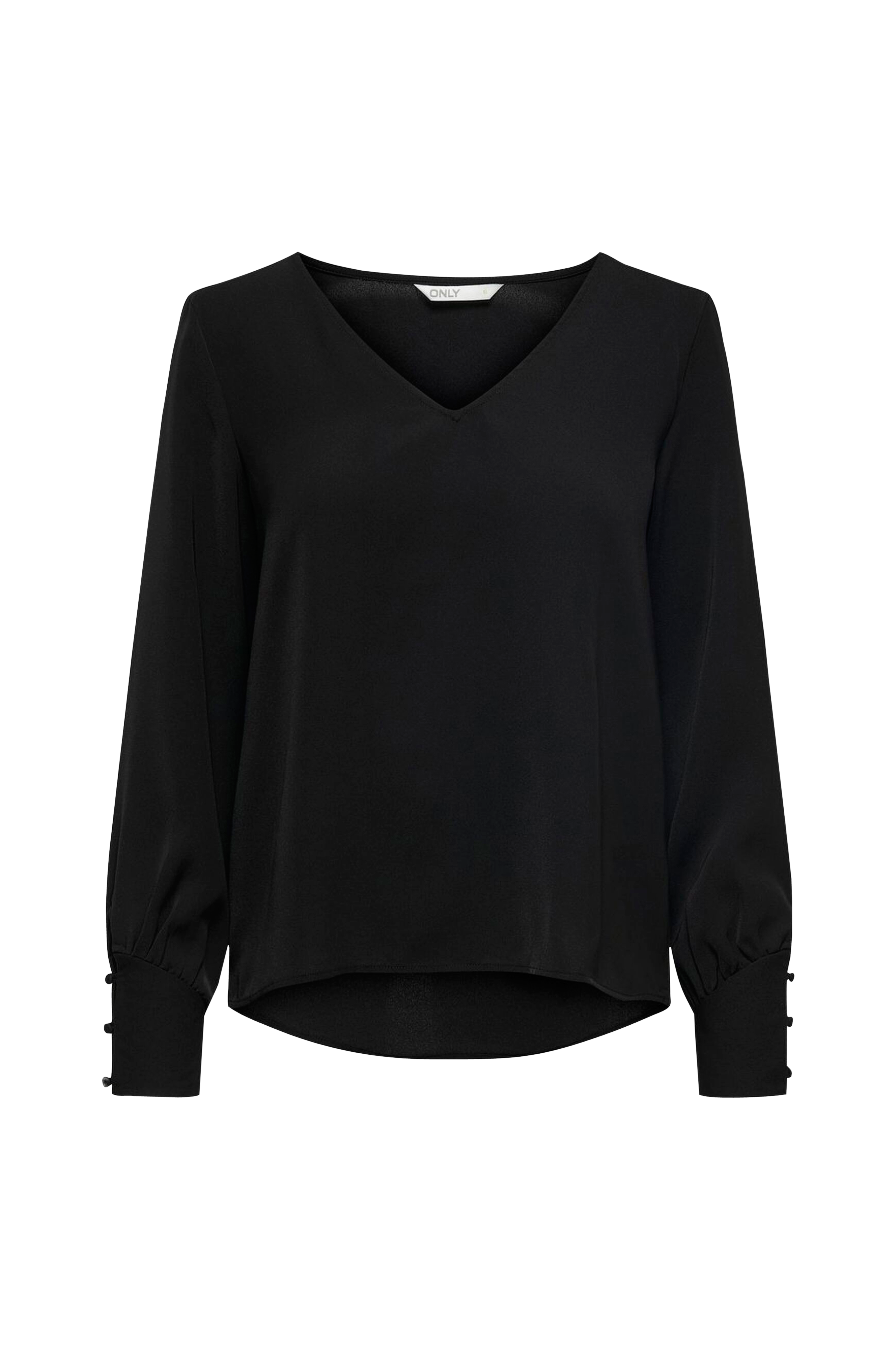 Bluse onlLuma LS Top fra Only med V-utringning foran og lange ermer med bred mansjett med kledde knapper. Fremstilt i vevd kvalitet.