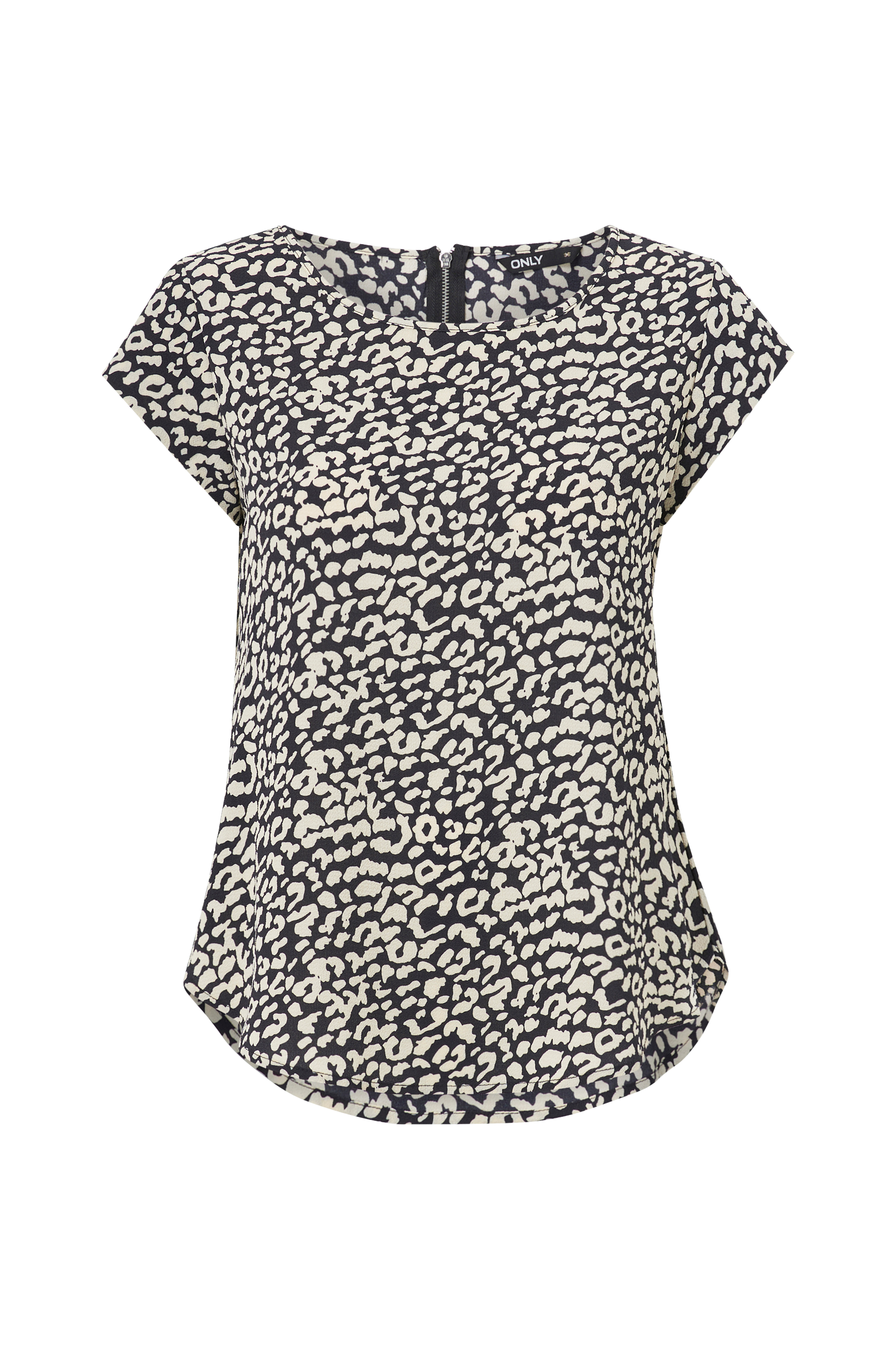 Bluse onlVic SS Aop Top fra Only i kortermet modell med metallglidelås i nakken og avrundet nederkant. Produsert i vevd, kreppet kvalitet.