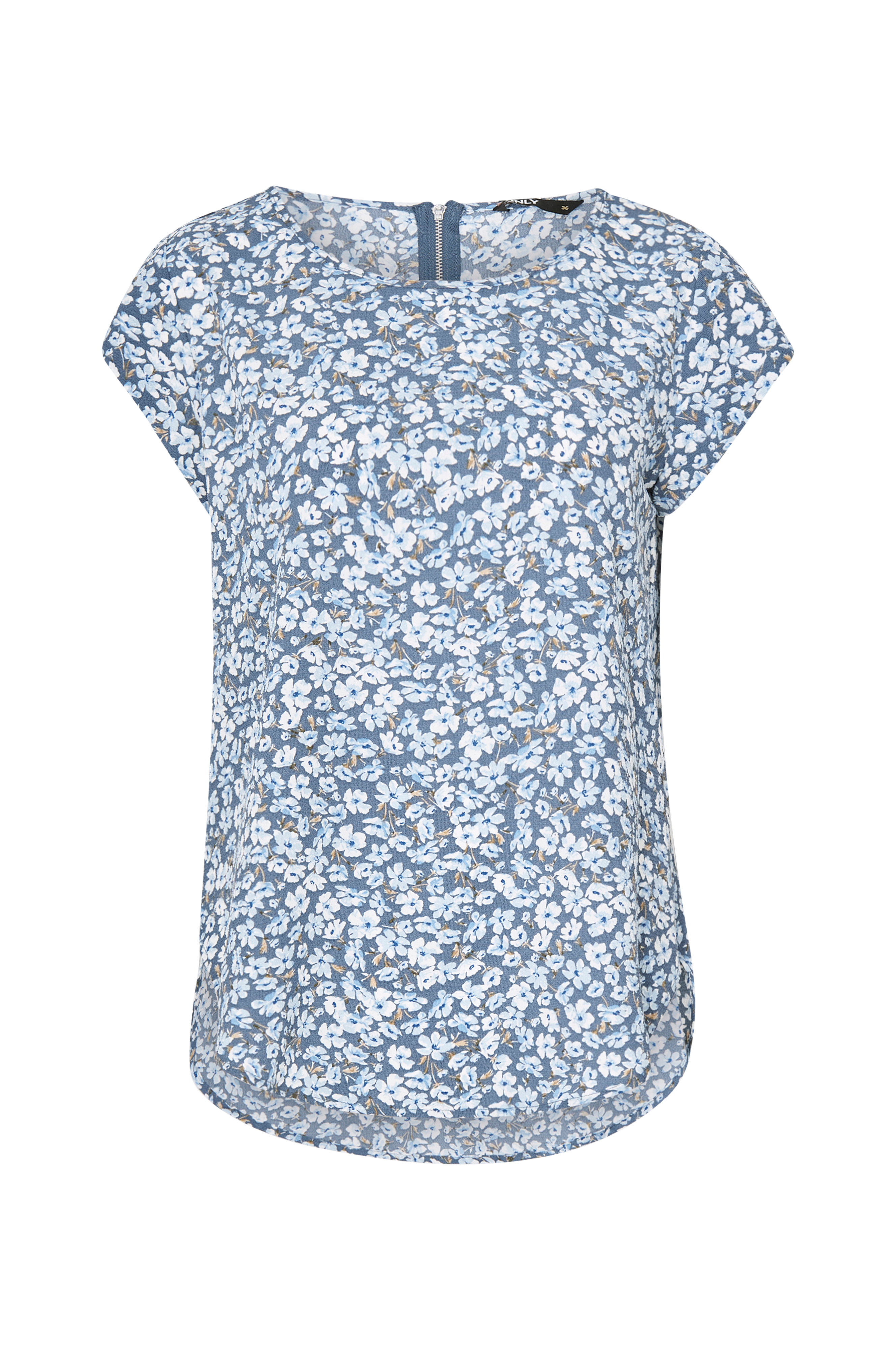 Bluse onlVic SS Aop Top fra Only i kortermet modell med metallglidelås i nakken og avrundet nederkant. Produsert i vevd, kreppet kvalitet.
