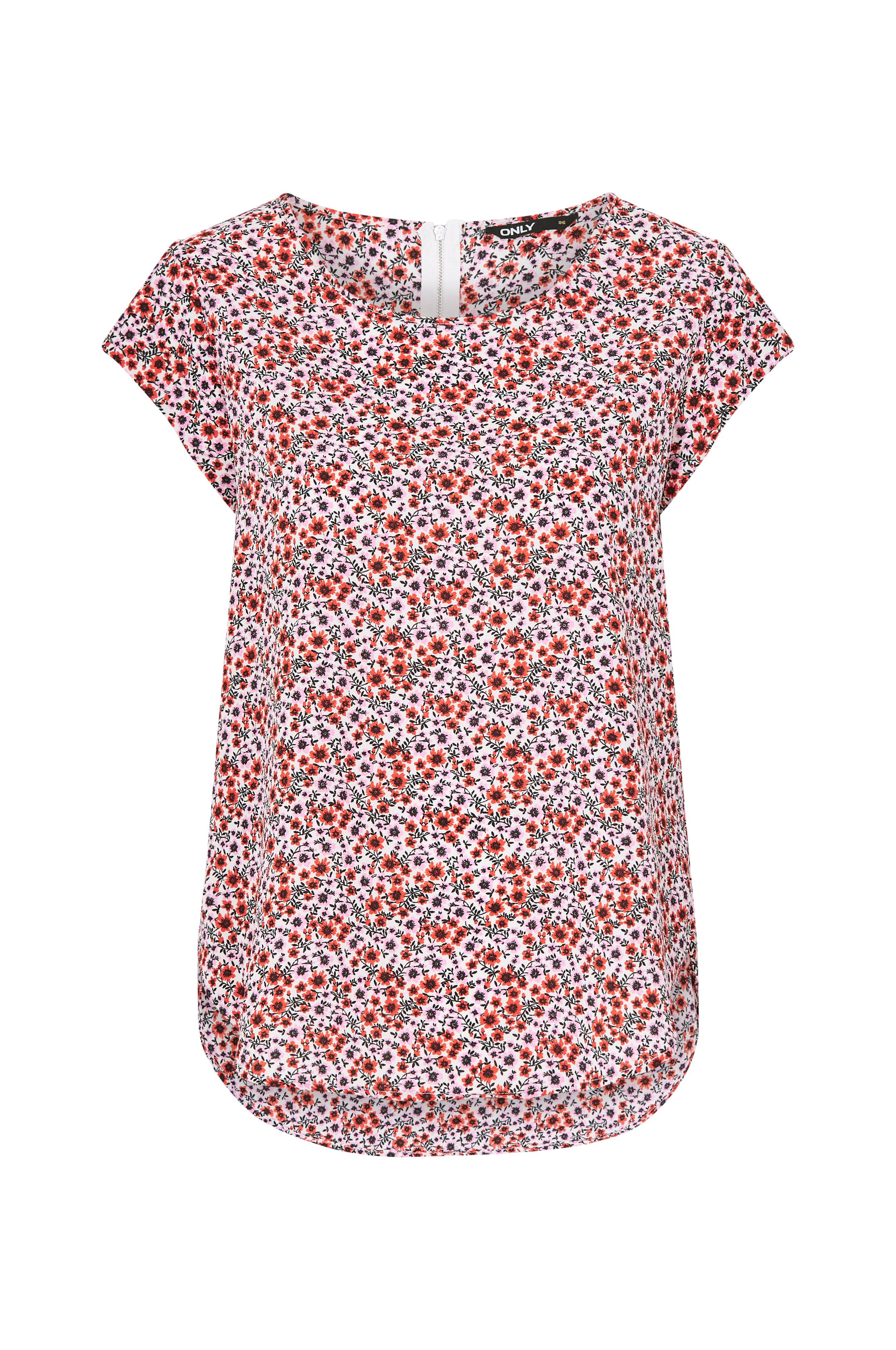 Bluse onlVic SS Aop Top fra Only i kortermet modell med metallglidelås i nakken og avrundet nederkant. Produsert i vevd, kreppet kvalitet.