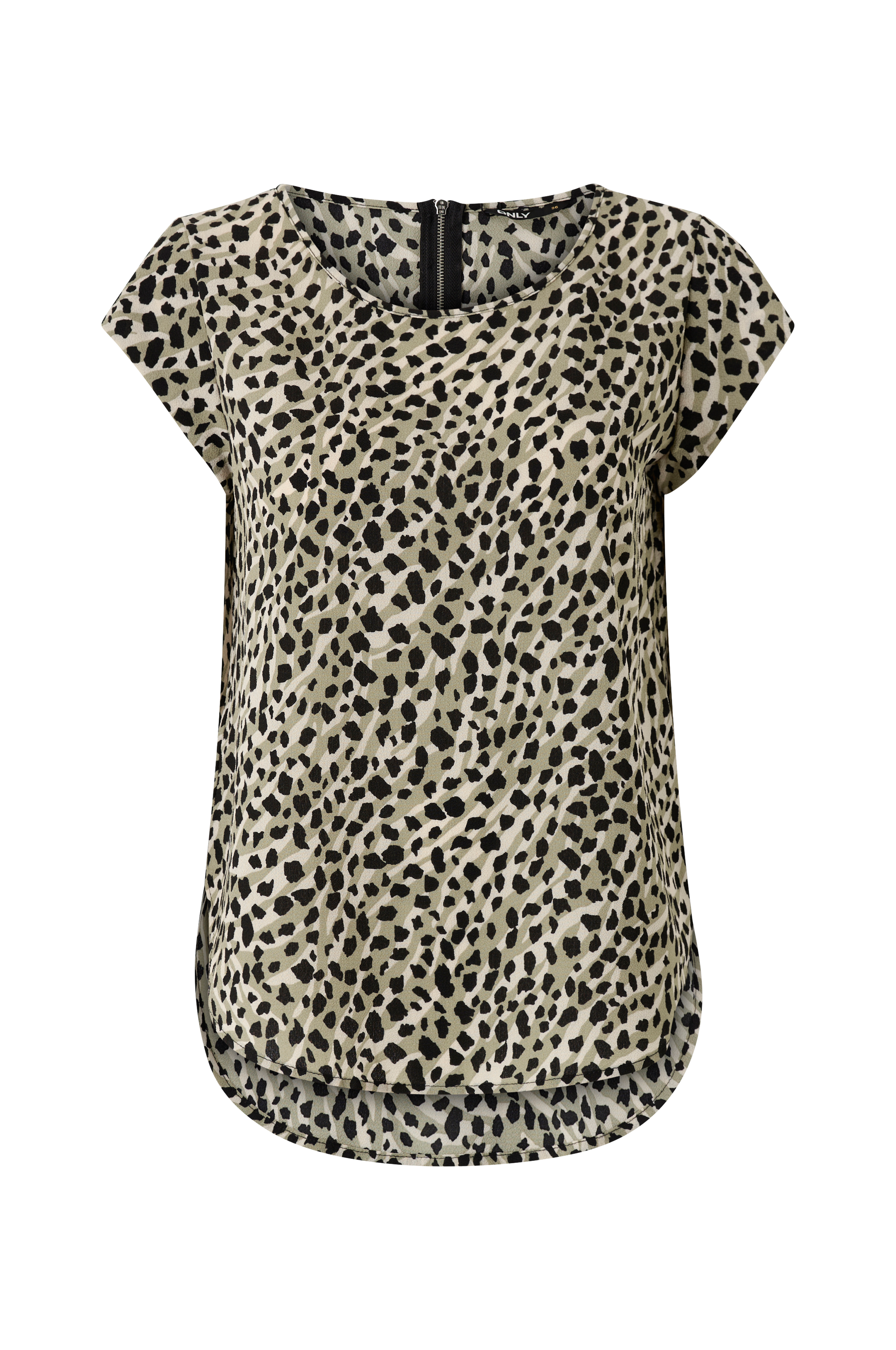 Bluse onlVic SS Aop Top fra Only i kortermet modell med metallglidelås i nakken og avrundet nederkant. Produsert i vevd, kreppet kvalitet.