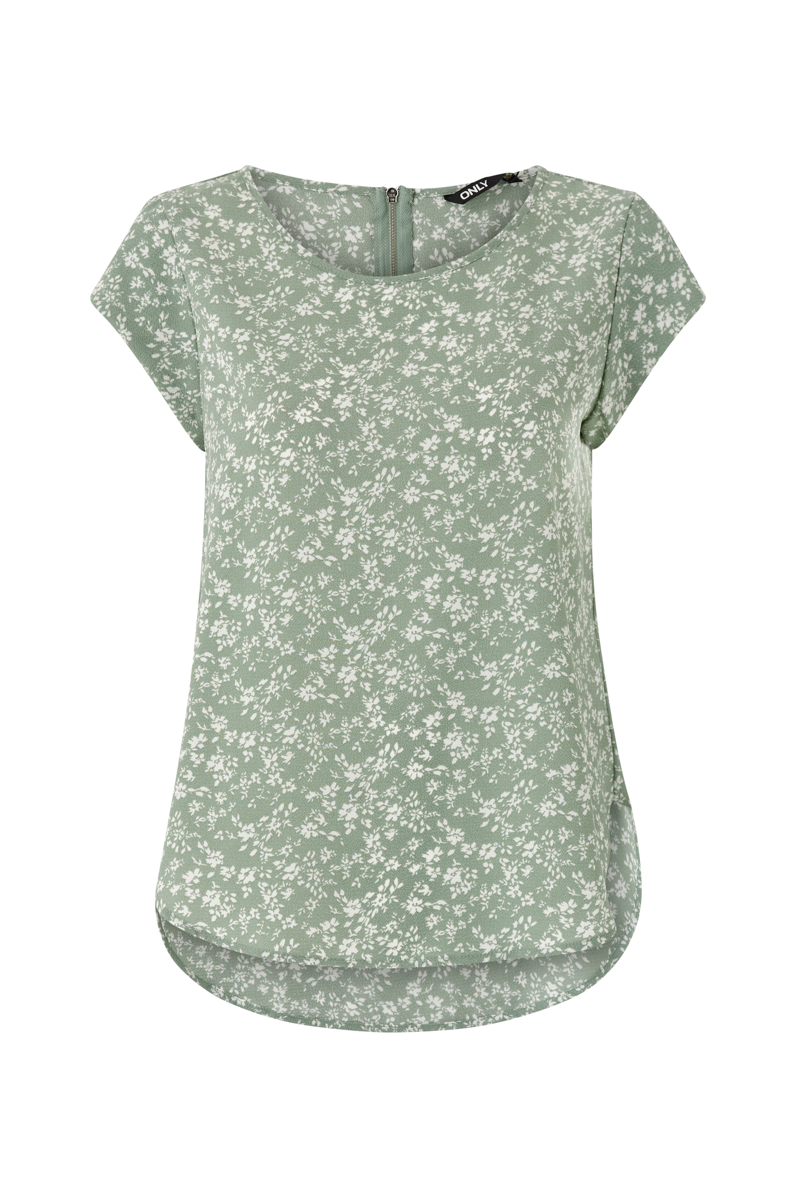 Bluse onlVic SS Aop Top fra Only i kortermet modell med metallglidelås i nakken og avrundet nederkant. Produsert i vevd, kreppet kvalitet.