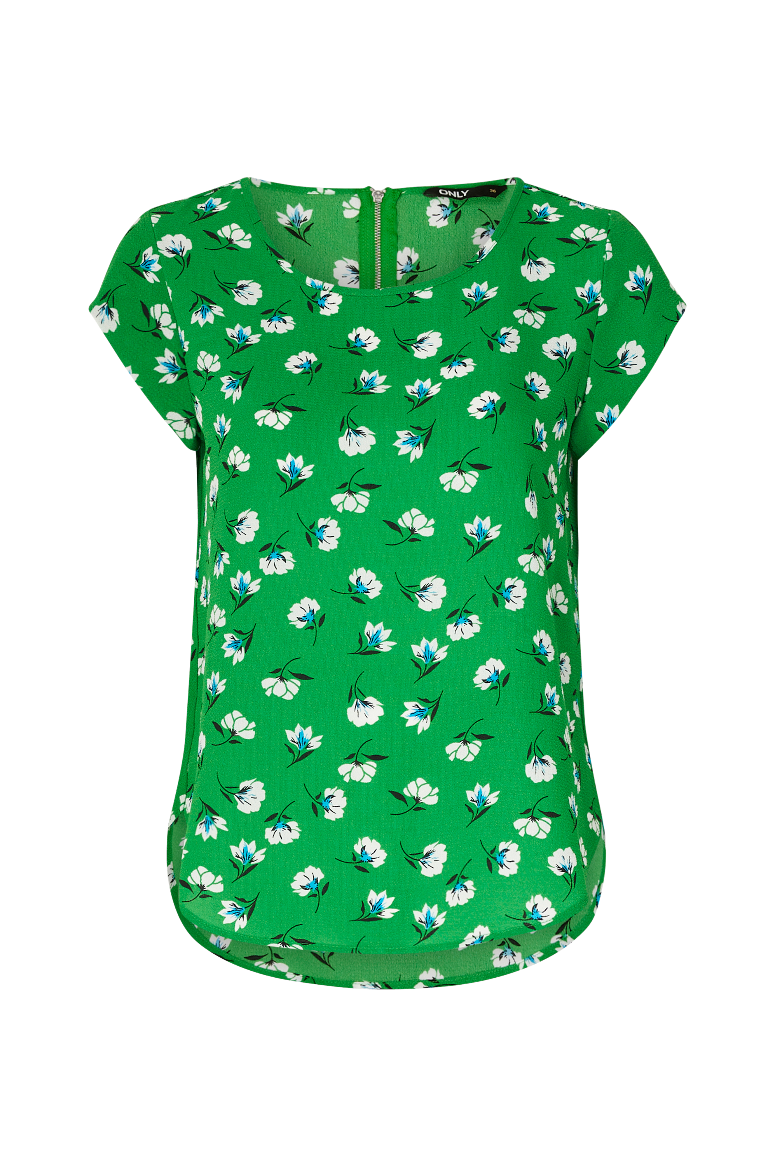 Bluse onlVic SS Aop Top fra Only i kortermet modell med metallglidelås i nakken og avrundet nederkant. Produsert i vevd, kreppet kvalitet.