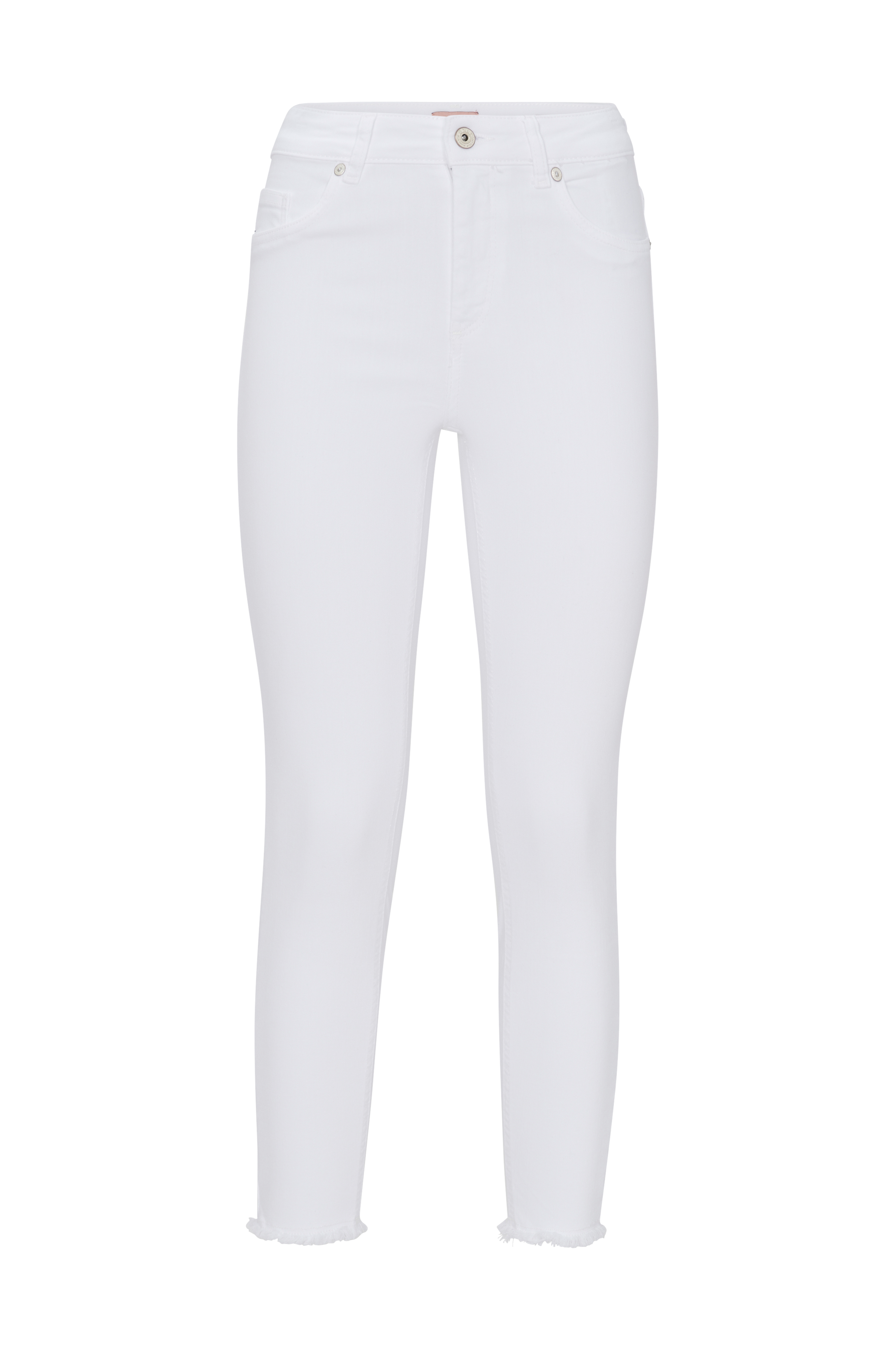 Bukse onlBlush Mid Skinny Ankle Raw fra Only i smal modell med avklipte, frynsete benkanter, fuskelommer og en liten myntlomme foran, vanlige lommer bak, og glidelåsgylf. Produsert i myk stretchkvalitet.