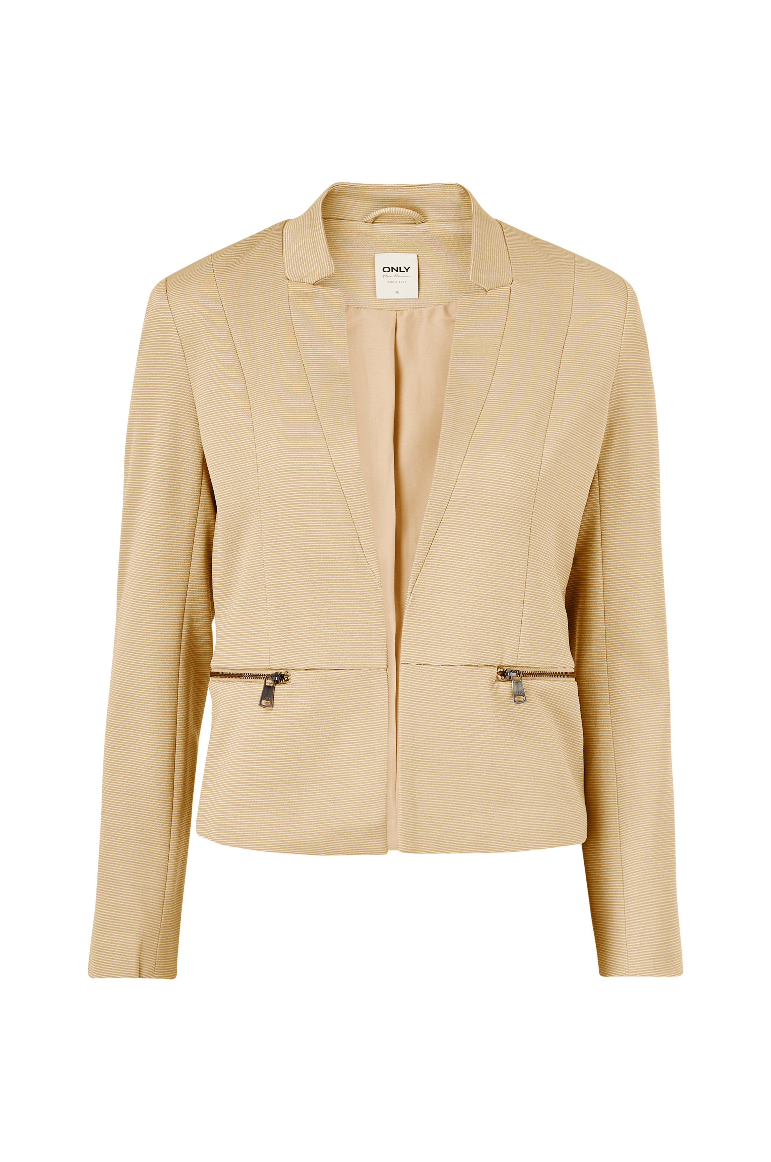 Dressjakke onlMaddy-Icon L/S Short Blazer fra Only i åpen modell med liten ståkrage og slag. Dekorglidelåser foran. Produsert i ribbestrikket trikot med glans. Fôret.